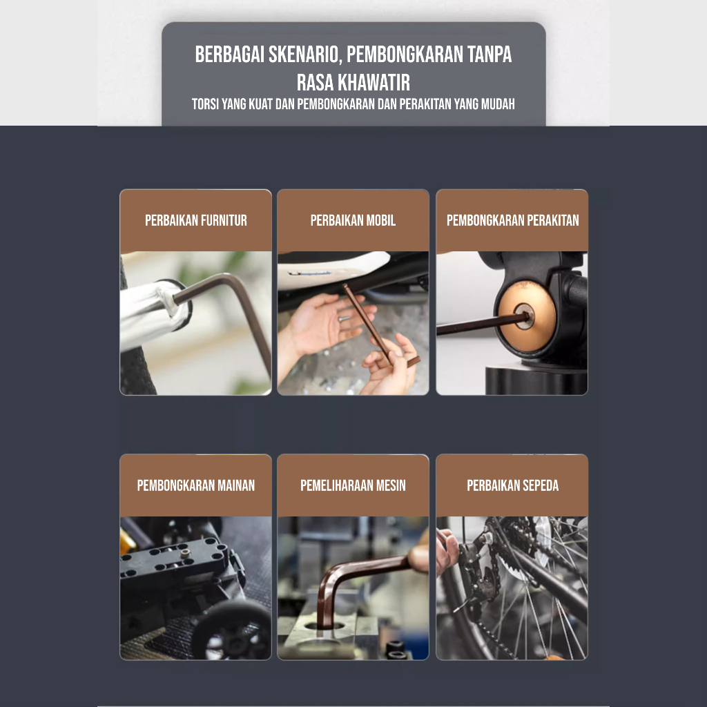 CUTA Kunci L Set 9 Pcs S2 Rata Ball Point Torx Bintang Hex Key Kunci L Set Lengkap Panjang Long