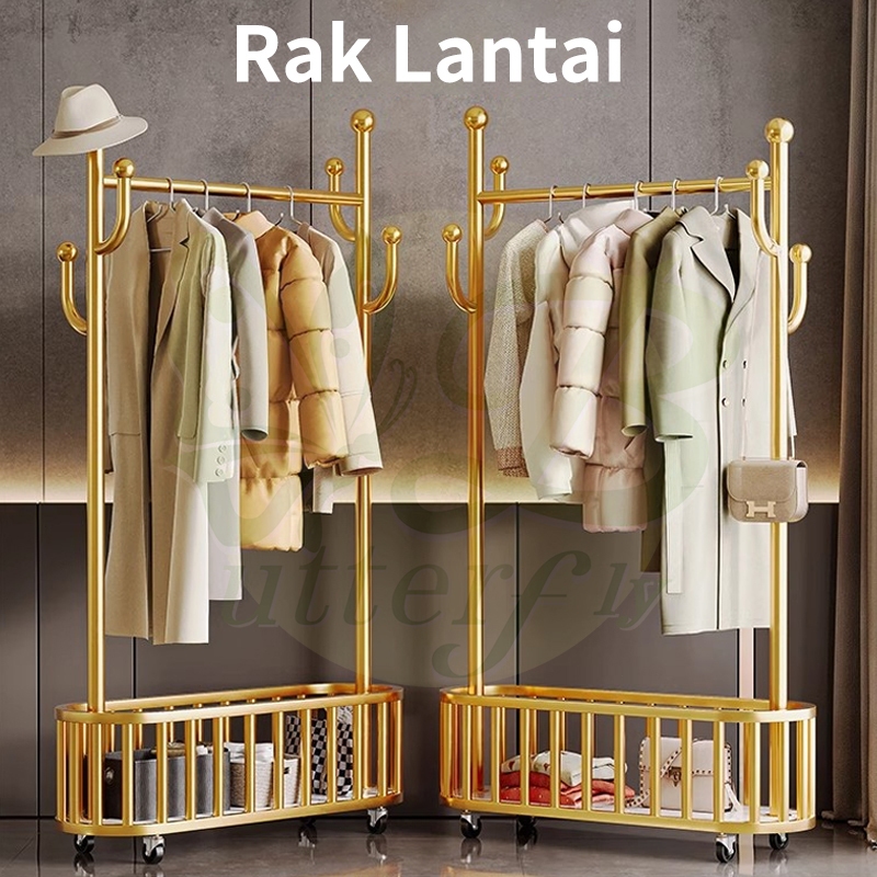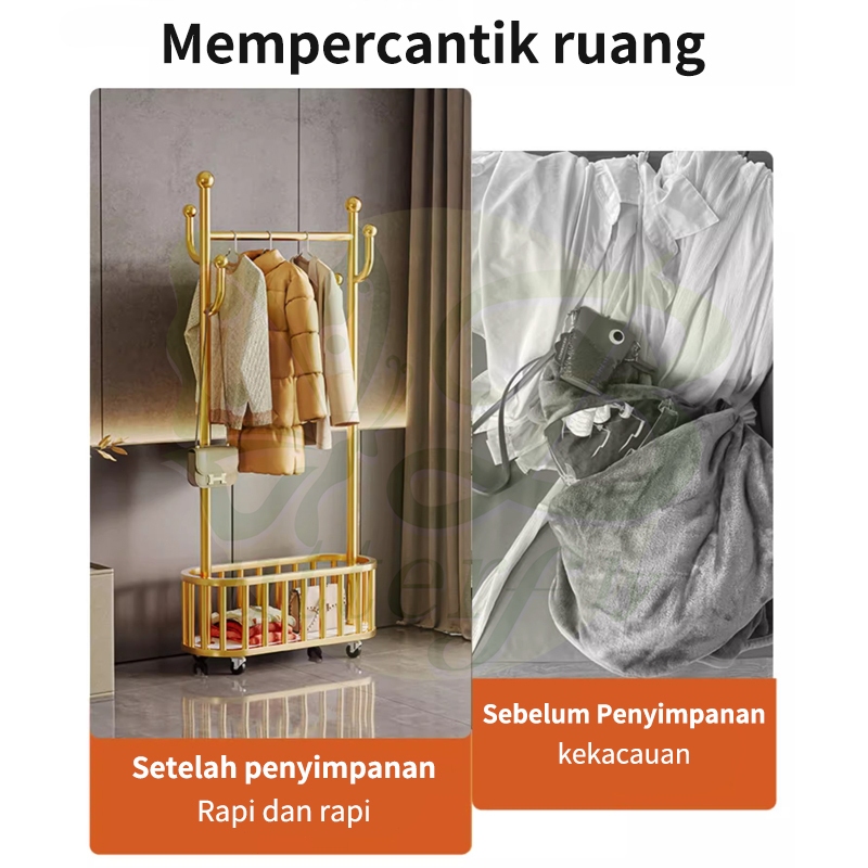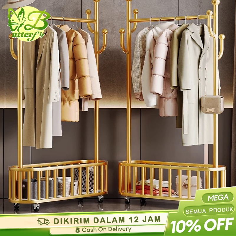 Gantungan Baju Rak / Keranjang Aesthetic Multifungsi Minimalis 4 Roda/ Stand Hanger / Desain Aesthetic