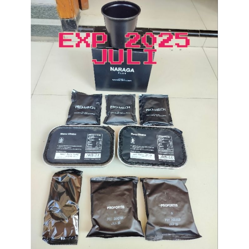 Promo Satu Paket Dus Naraga Plus Ransum TNI Nasi Kaleng Makanan TNI Exp Juli 2025 / Ransum Plus Naraga TNI