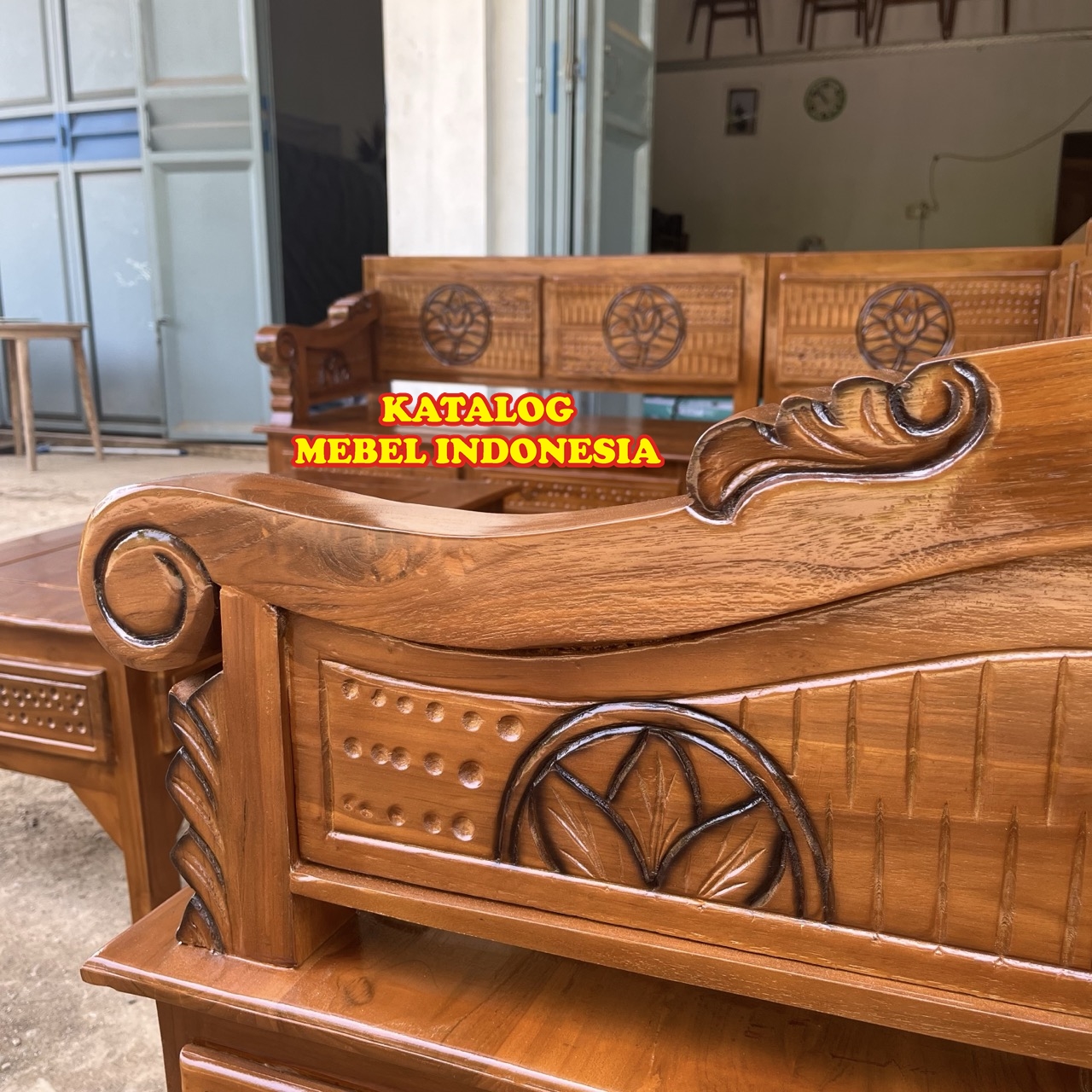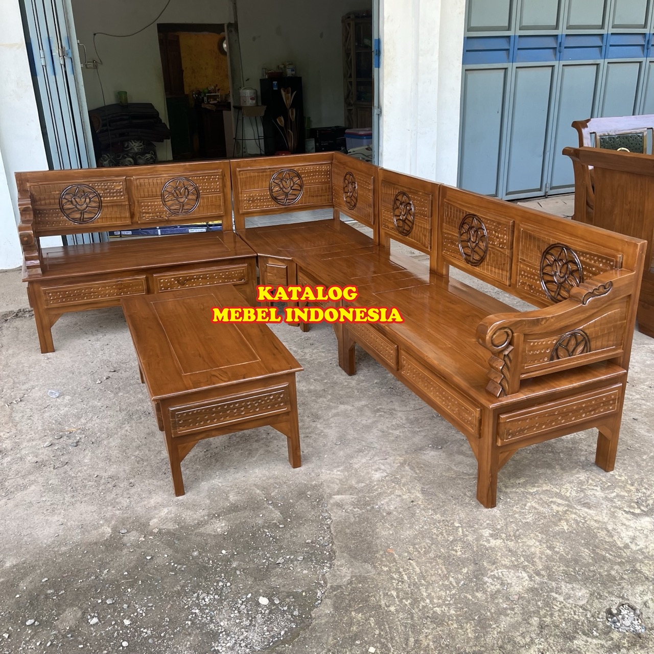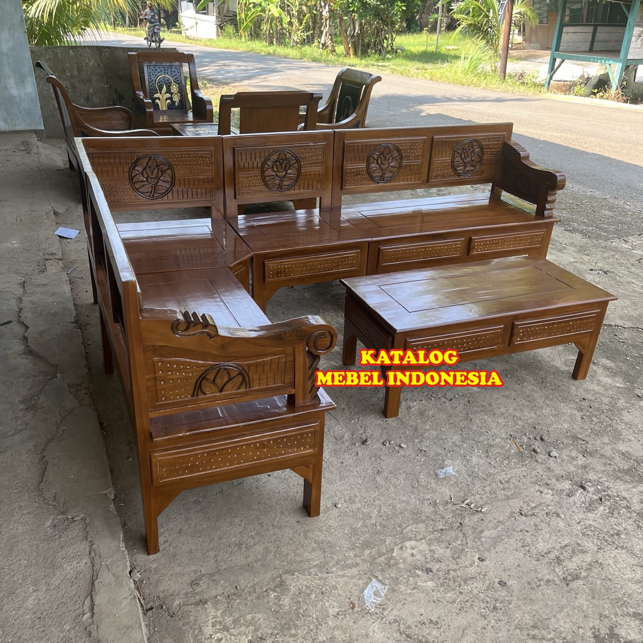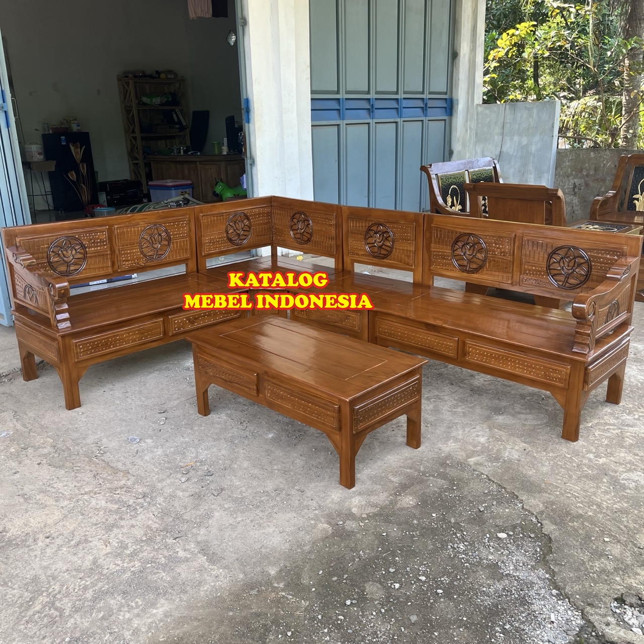 Kursi Tamu Jati Sudut Minimalis Motif Bunga Bagong - Furniture, Chairs