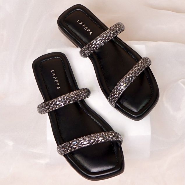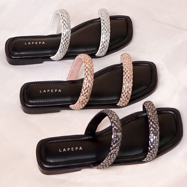 LAPEPA YUK - JASMINE Sandal Wanita Teplek Mewah Blink Kristal Size 36 - 40 Sendal Slop Rumah Flat Cewek Pergi Jalan Blin