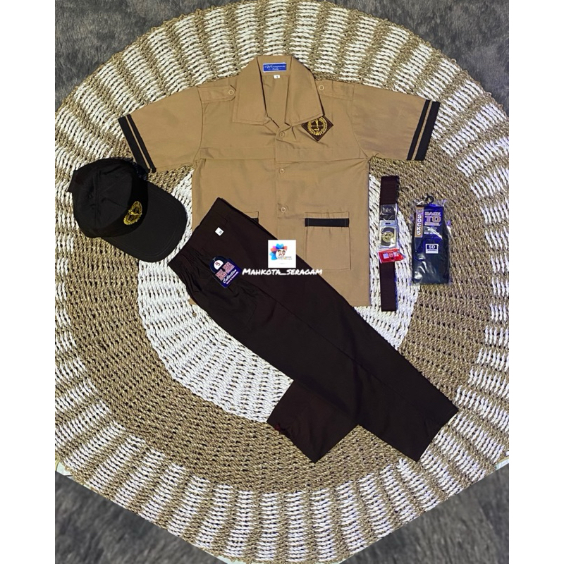 Setelan Seragam Pramuka Siaga SD Laki Laki Baju Siaga Lengan Pendek Celana Cokelat Panjang