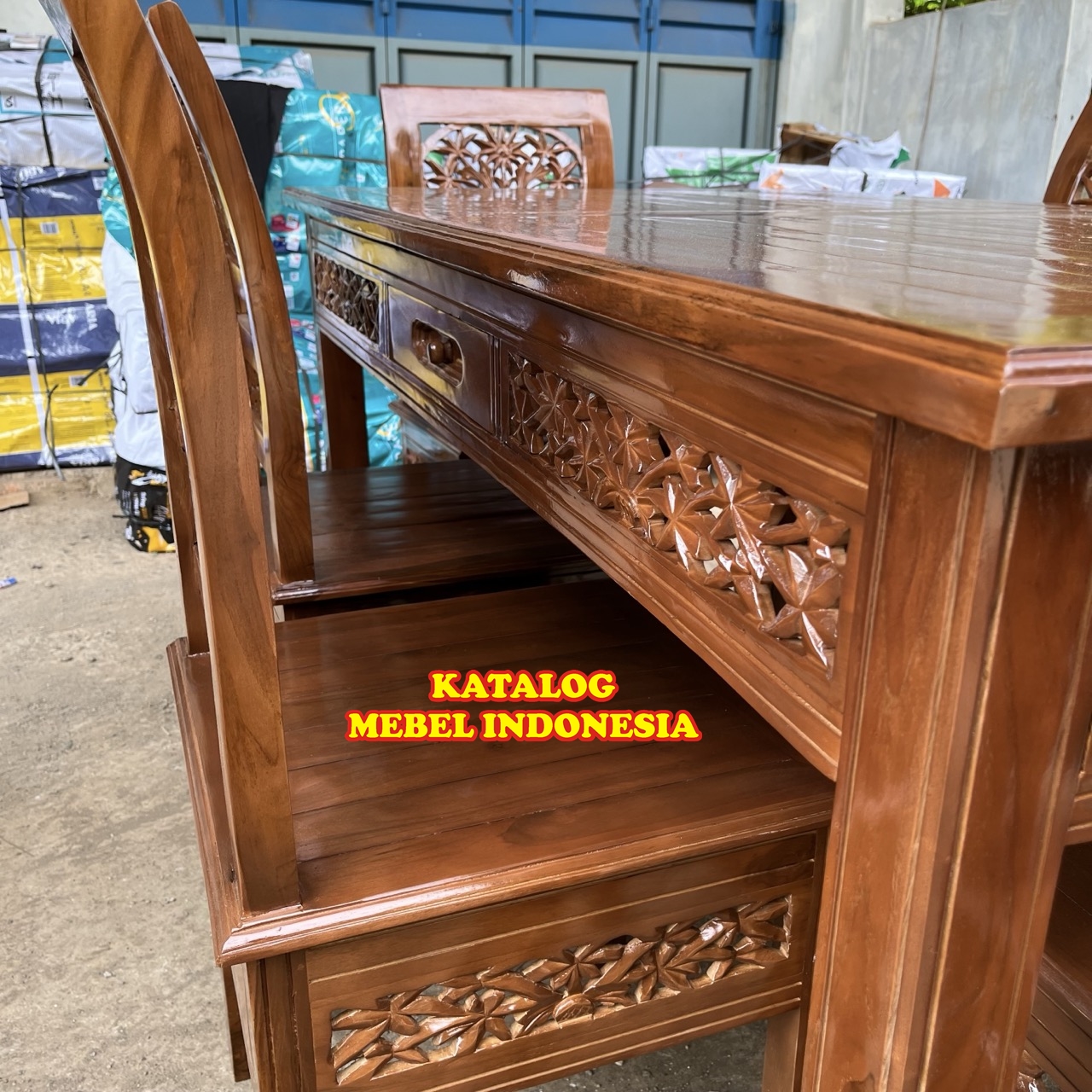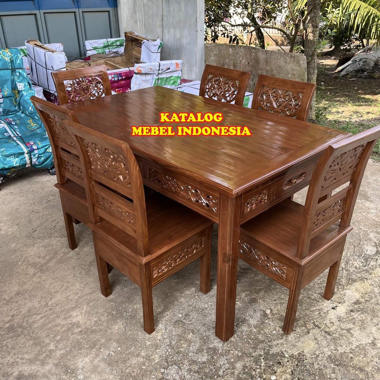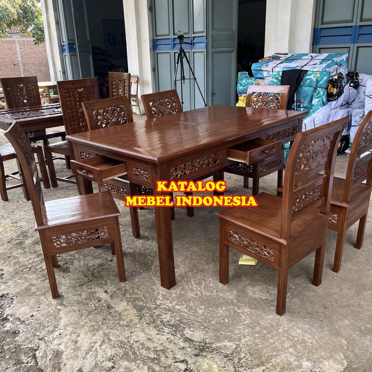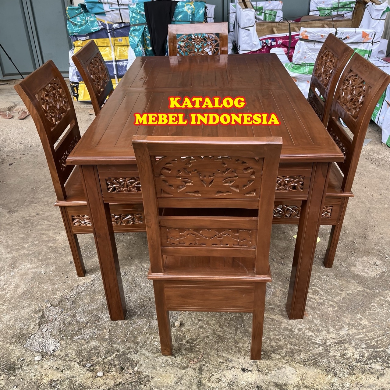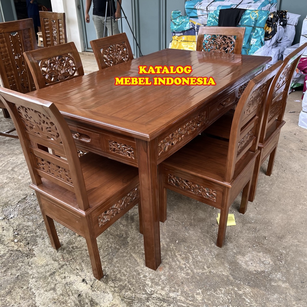 Set Meja Makan Kartini 6 Kursi Bahan Kayu Jati