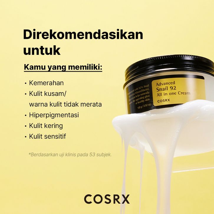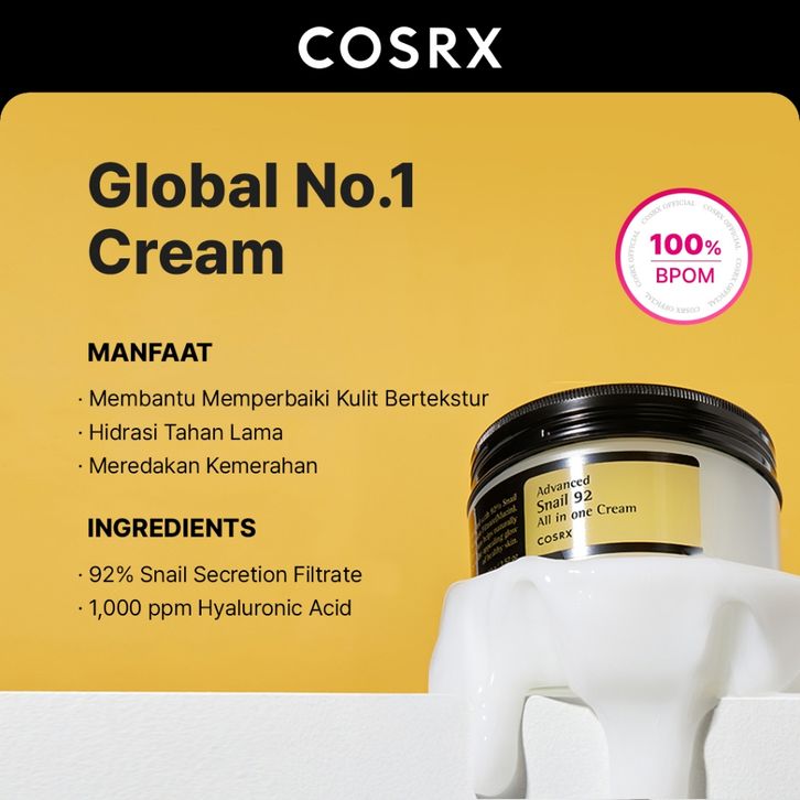 Skincare Bpom / Cosrx Advanced Snail 92 All in One Cream Skin Care - 100 Ml / Skincare Pria / Cream Skincare Wanita