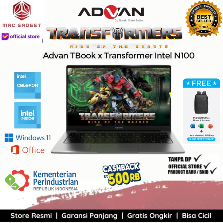 Official Storeš„ADVAN TBOOK x Transformers Intel N100 4GB/128GB 14" HD Laptop Notebook Free Windows 11 Upgradeable Resmi