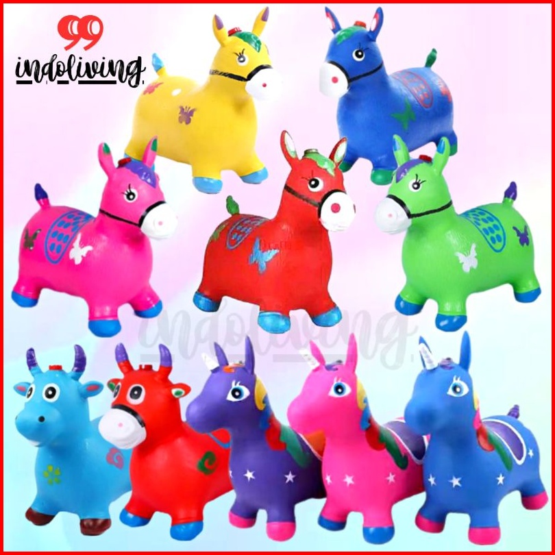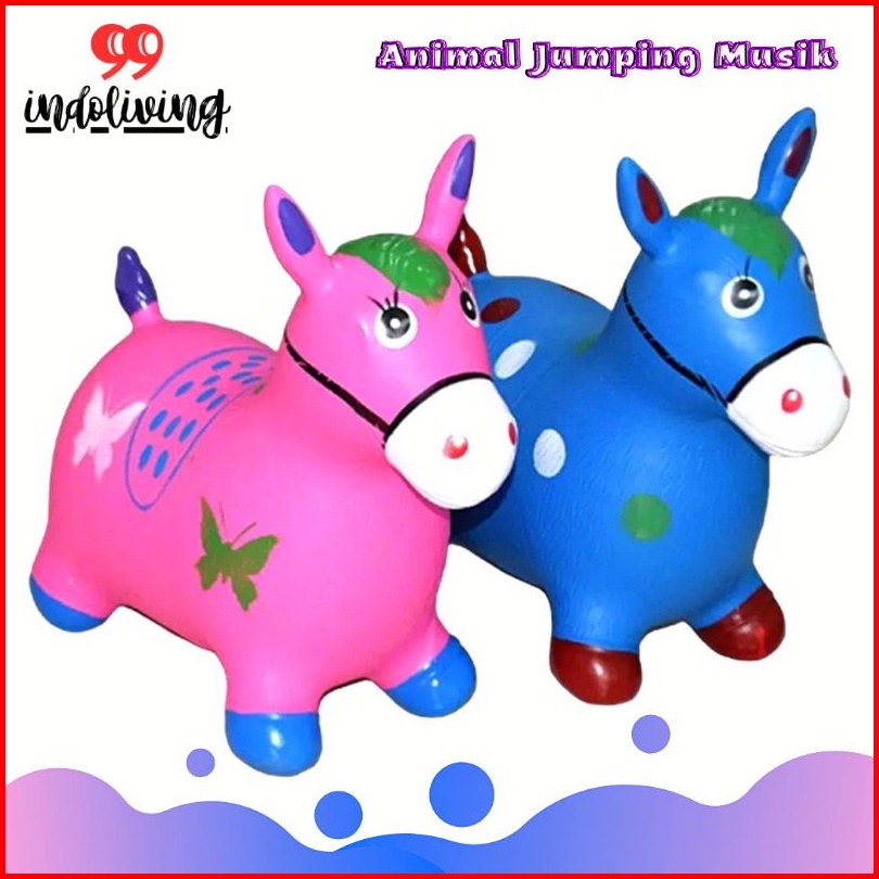Jumping Animal Musik Mainan Anak Kuda Kudaan Sapi Karet Bisa Ditunggang