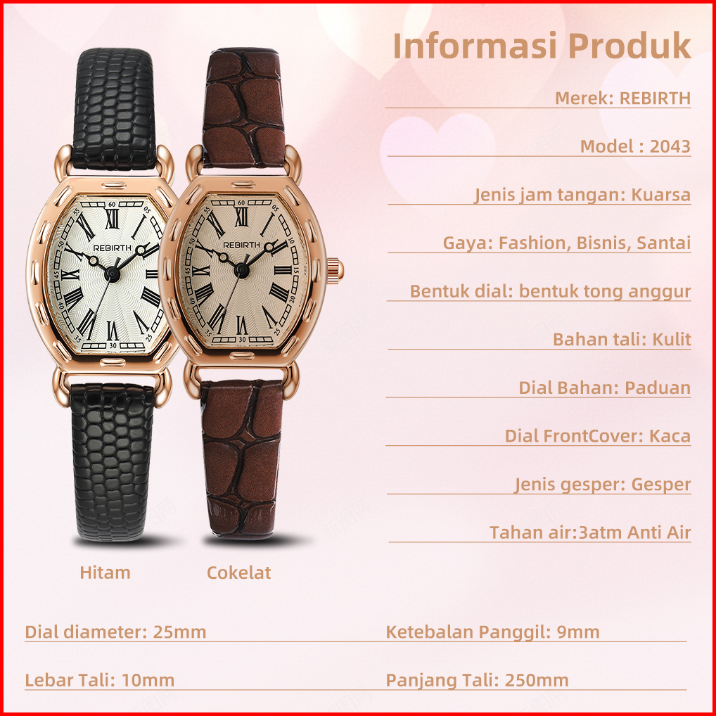 Rebirth Jam Tangan Wanita Anti Air Kuarsa Antik Kasual Tali Kulit Jam Tangan Cewek Original