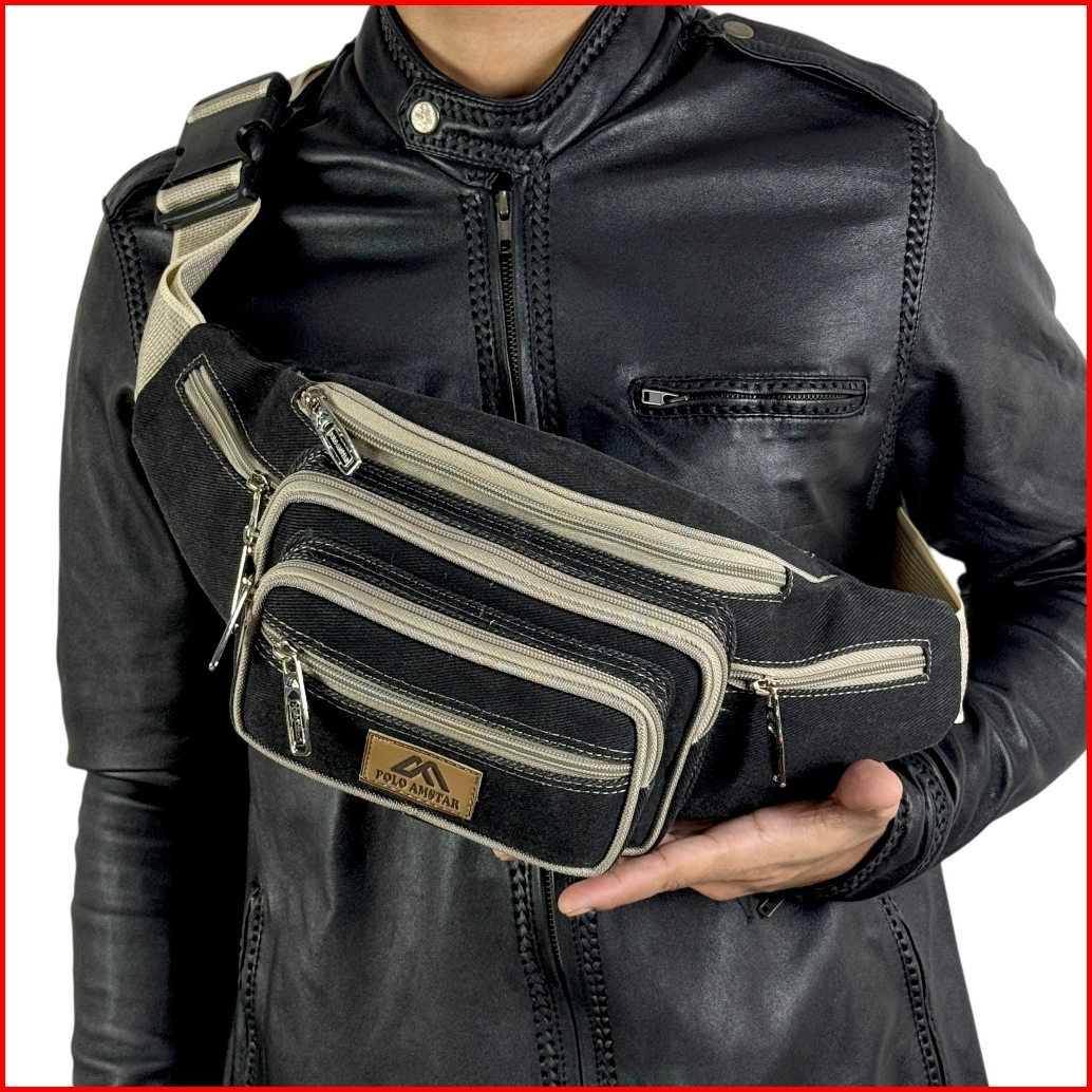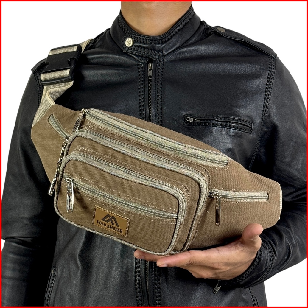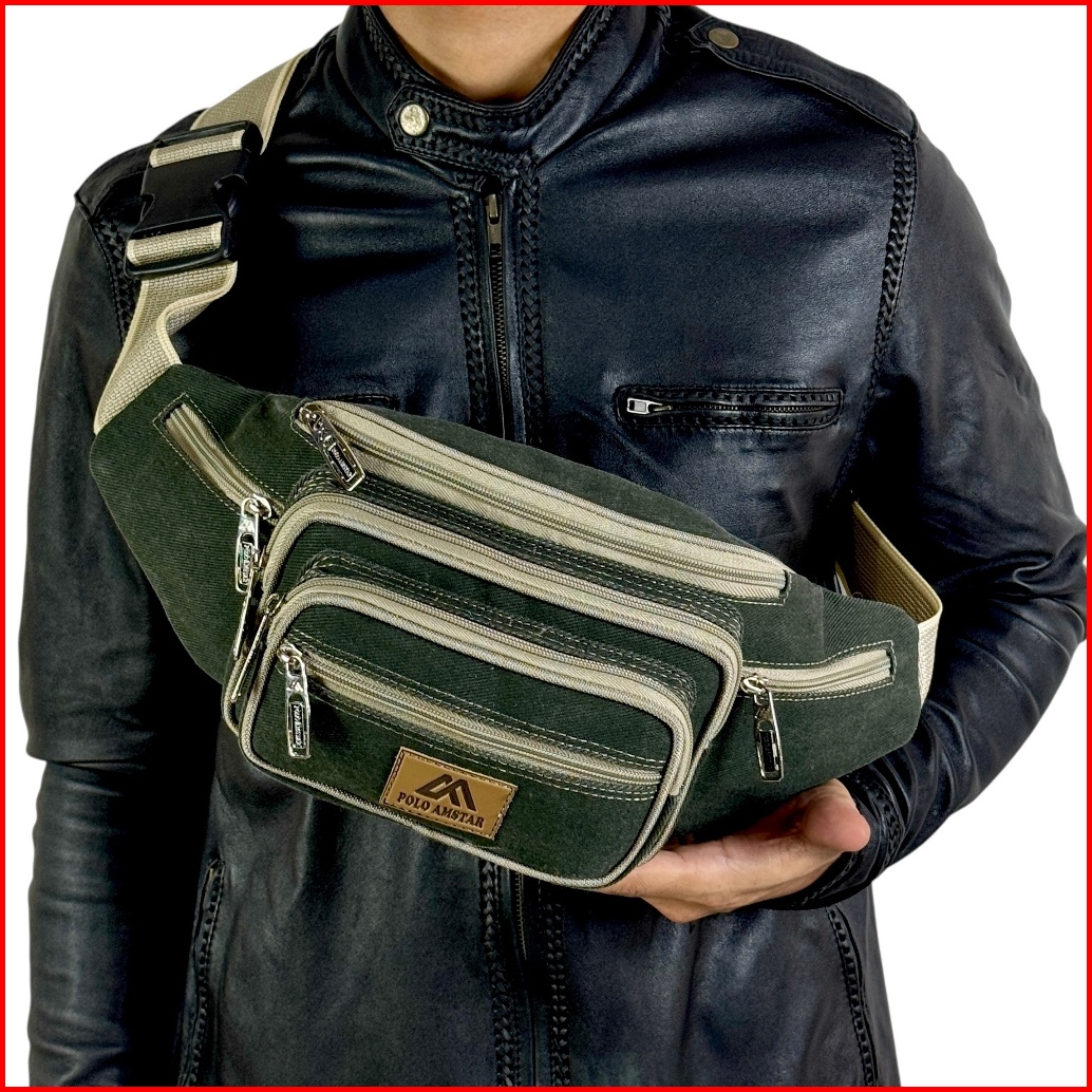 Polo Amstar Waist Bag Pria Wanita Tas Pinggang Selempang Bahu Kanvas Sling Bag