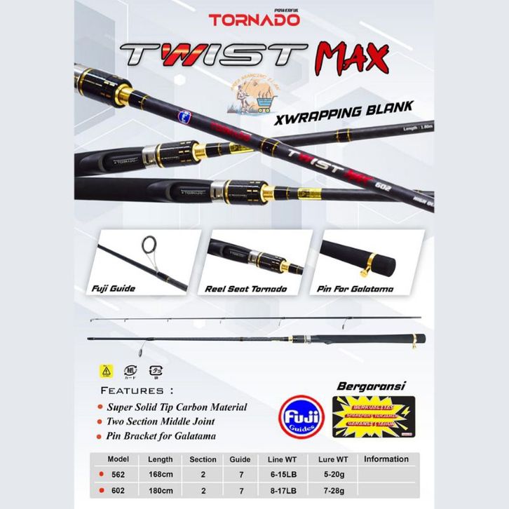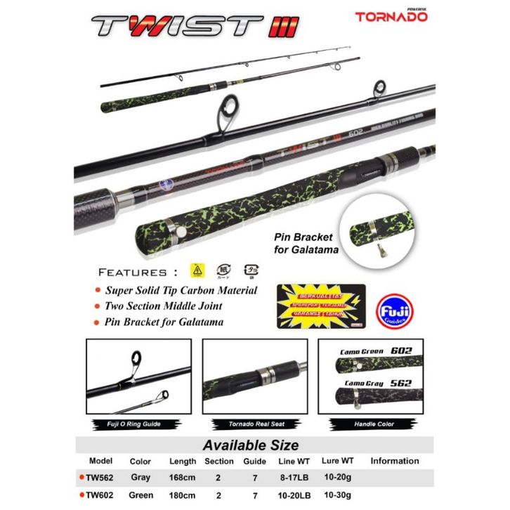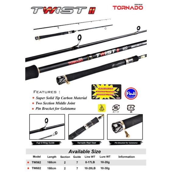 Joran Pancing POWERFUL TORNADO Twist Max 165cm/180cm Solid Carbon X-Wrap Kuat dan Sensitif