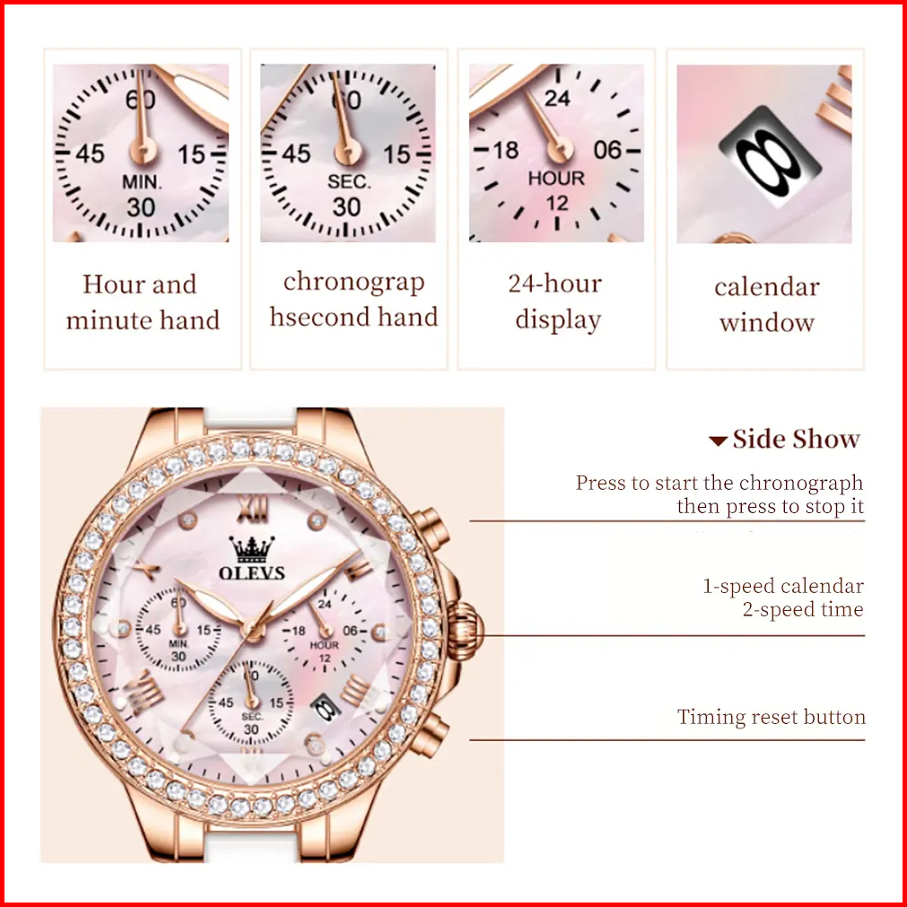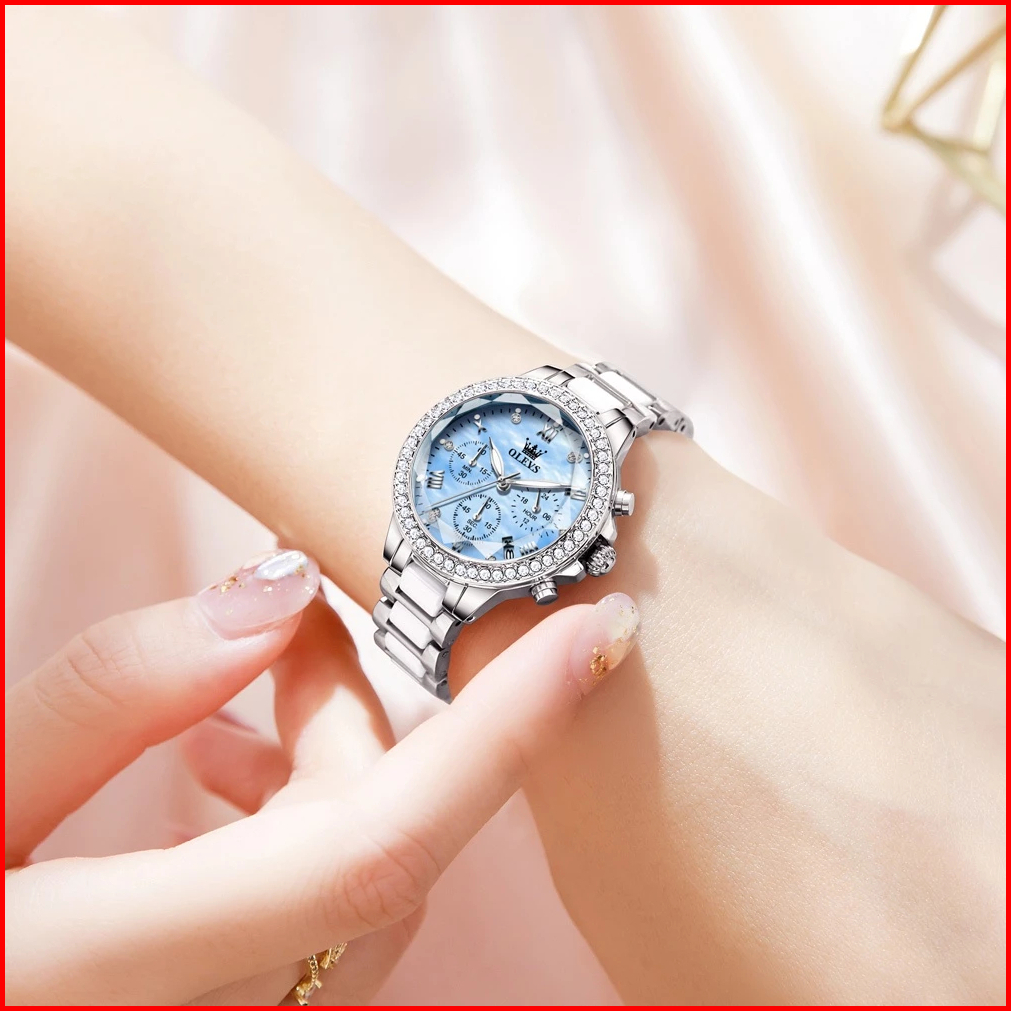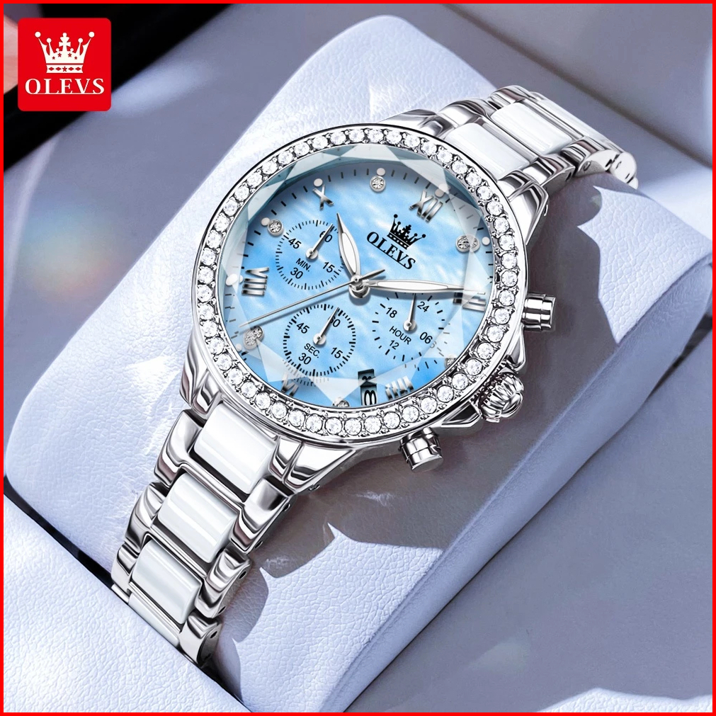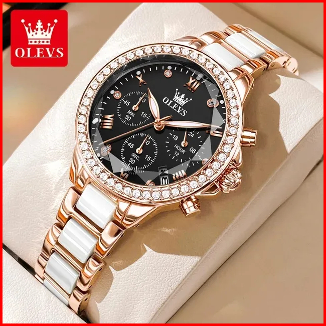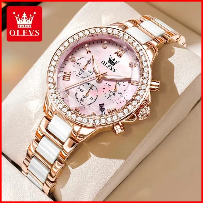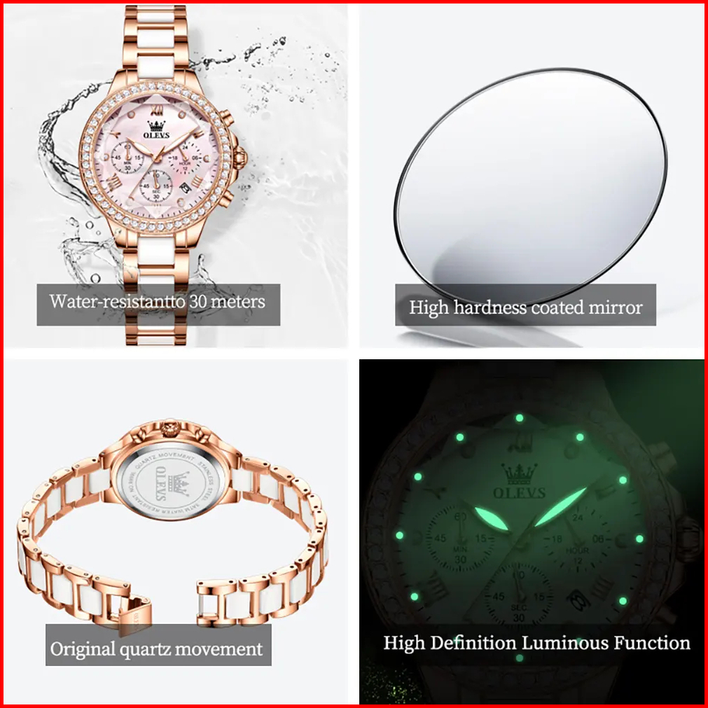 Olevs Jam Tangan Wanita Original Anti Air Fashion Mewah Elegan Multifungsi Keramik Women Watch