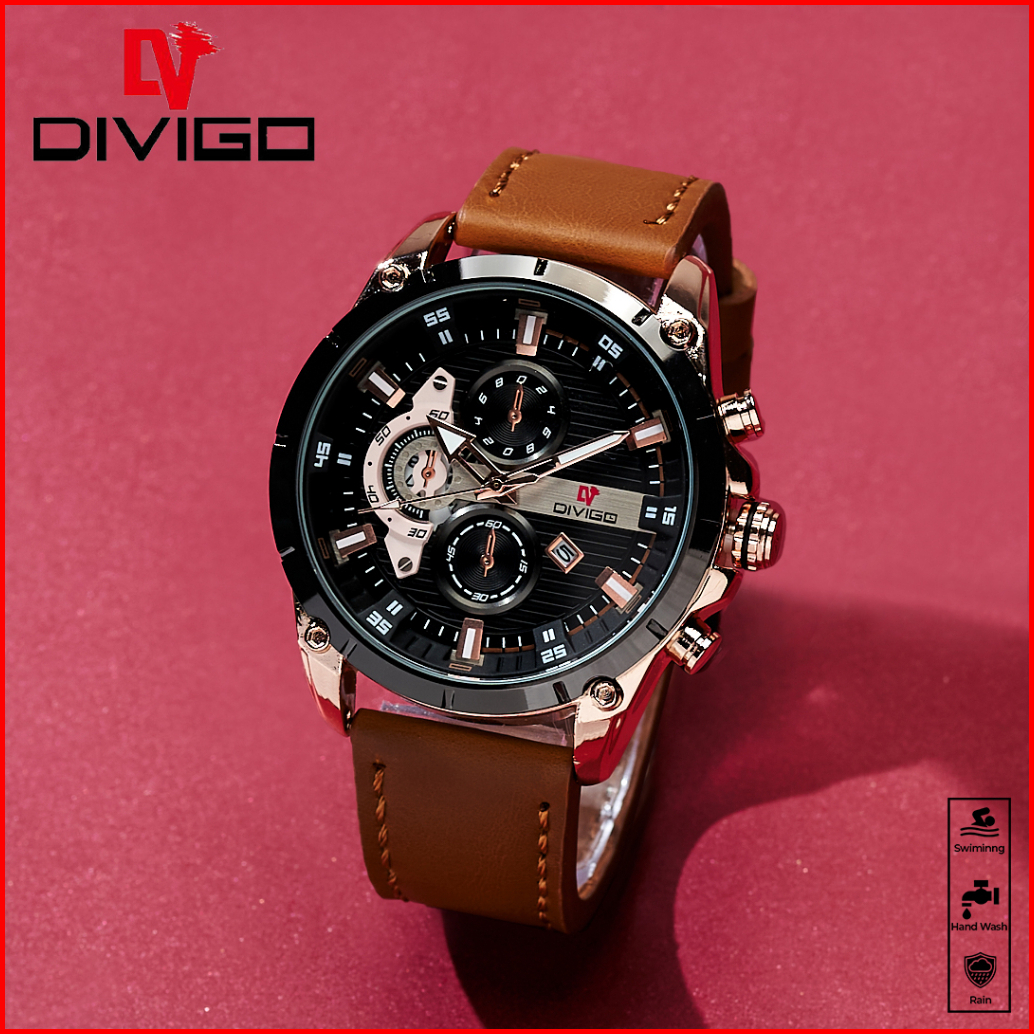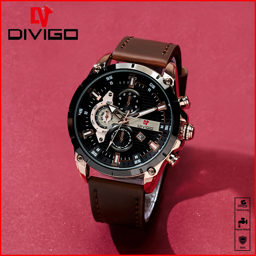 Jam Tangan Pria Divigo Original Dv-7017-1 Strap Kulit Tanggal Aktif