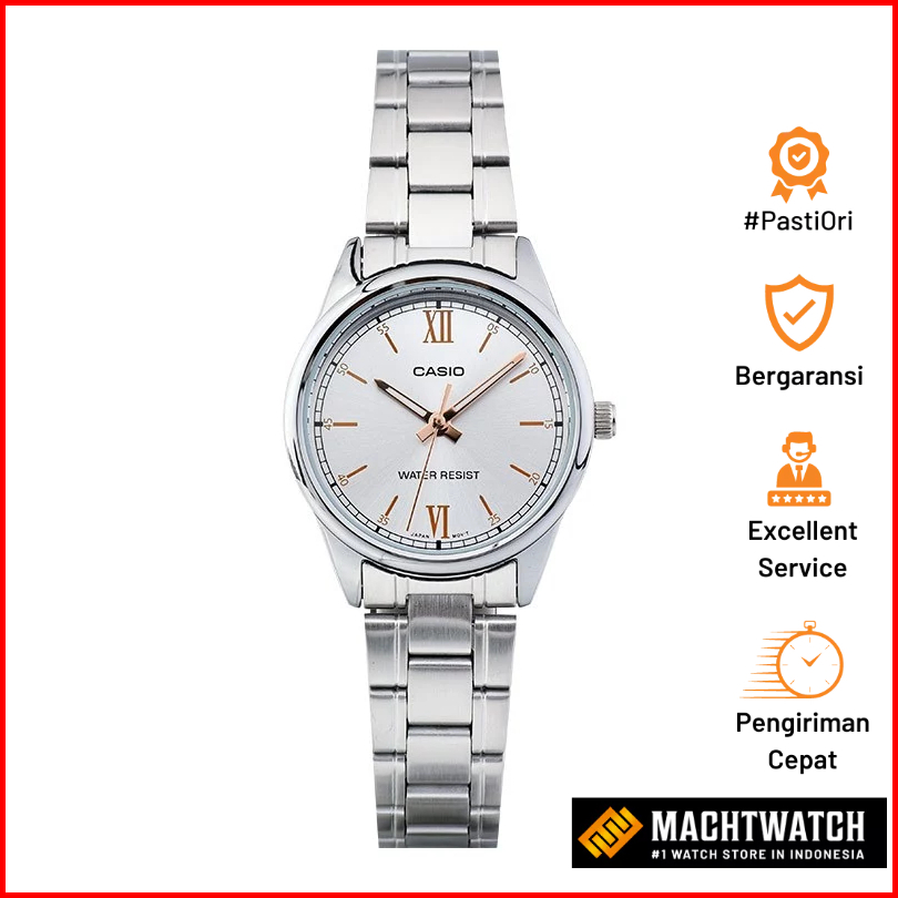 Jam Tangan Wanita Casio General Ltp-v005d-7b2udf Analog Ladies Silver Dial Stainless Steel Band