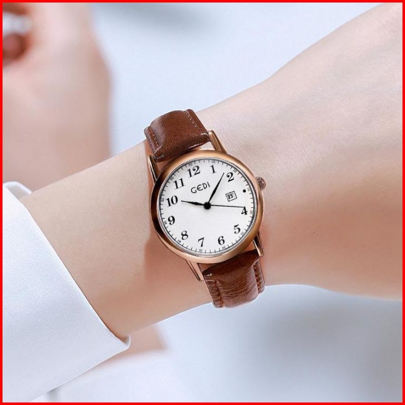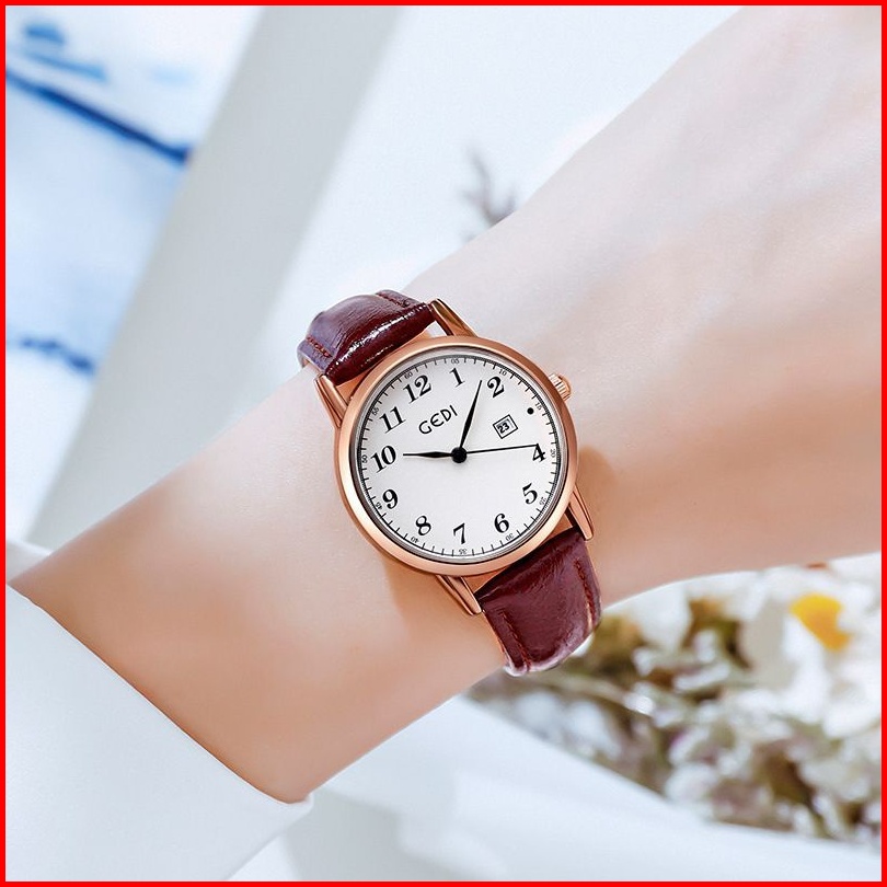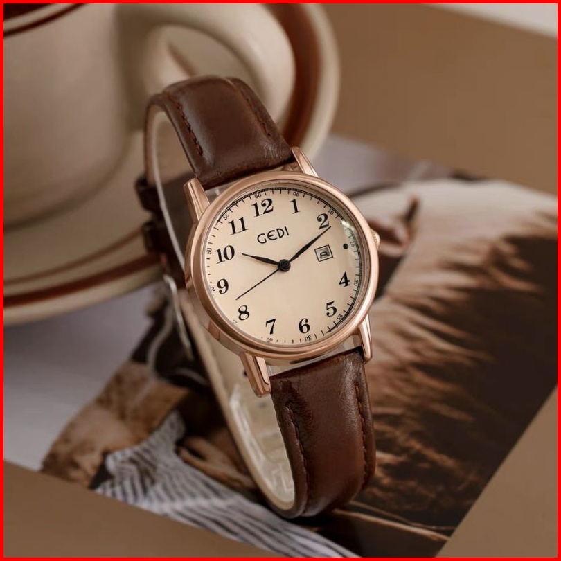 Gedi Jam Tangan Wanita Kulit Dengan Tanggal Jam Tanggal Vintage Gd005 Anti Air Water Resistant