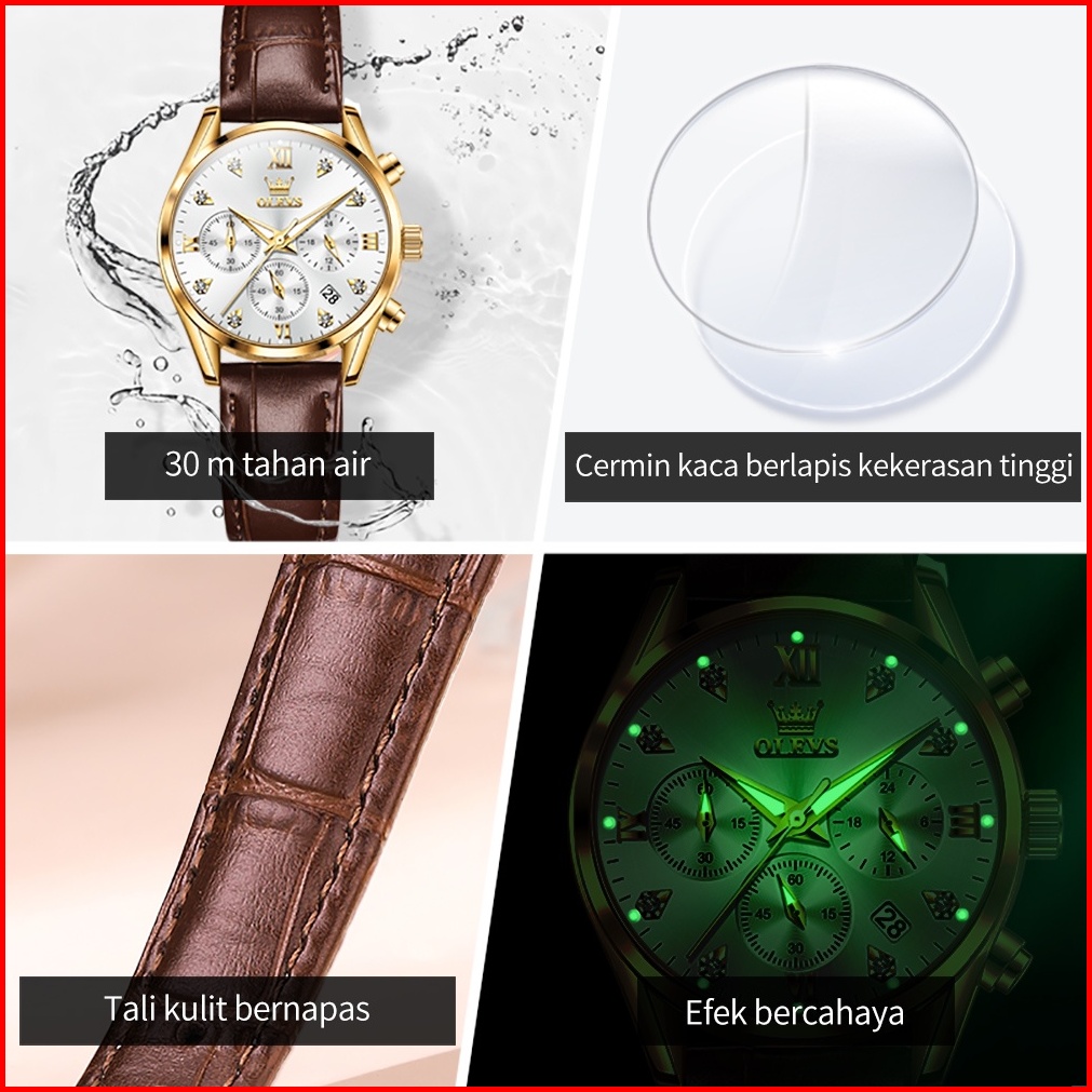 Olevs Jam Tangan Wanita Anti Air Anak Perempuan Kecil Original Kulit Korea Casual Putih Chrono Aktif Watch Women