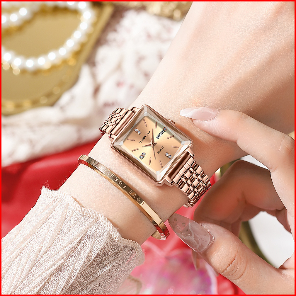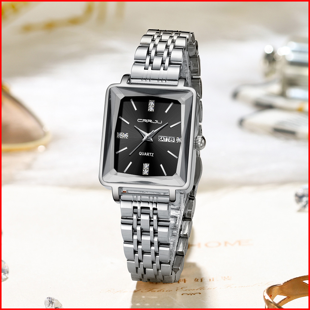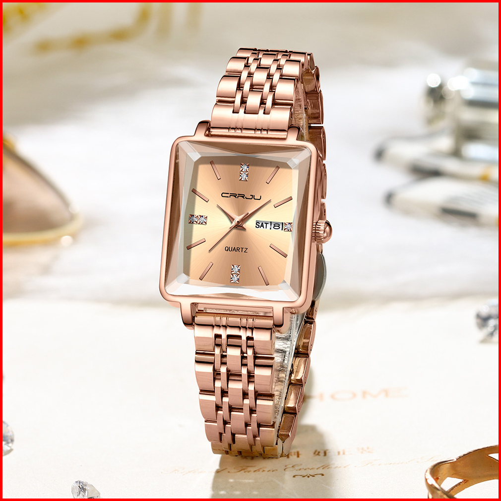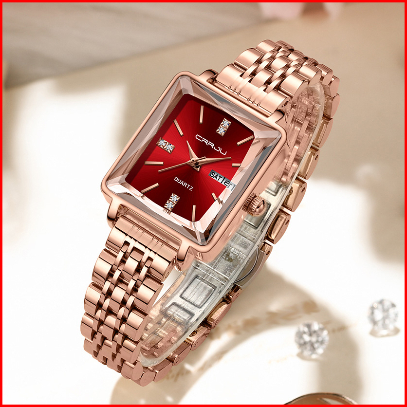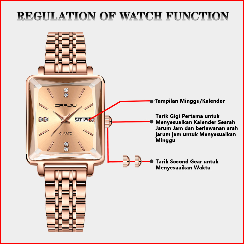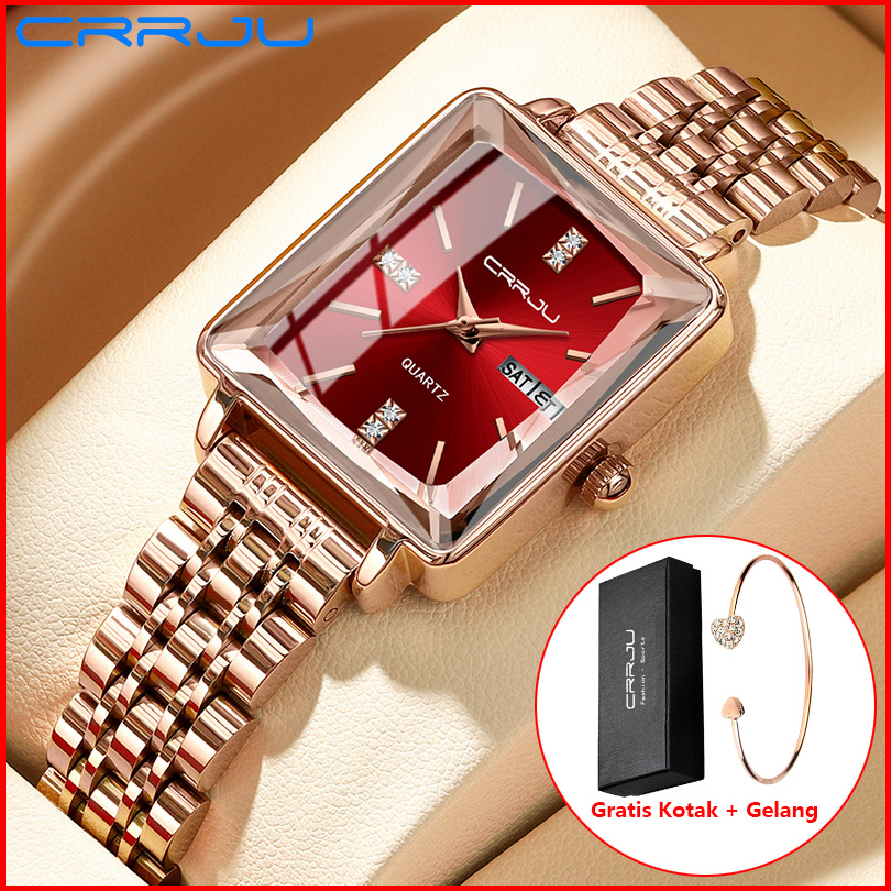 Crrju Jam Tangan Wanita Original Anggun Santai Berlian Kuarsa Anti Air Tali Stainless Steel Minggu Kalender Jam Tangan C