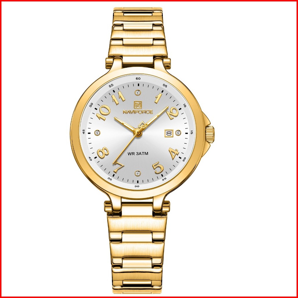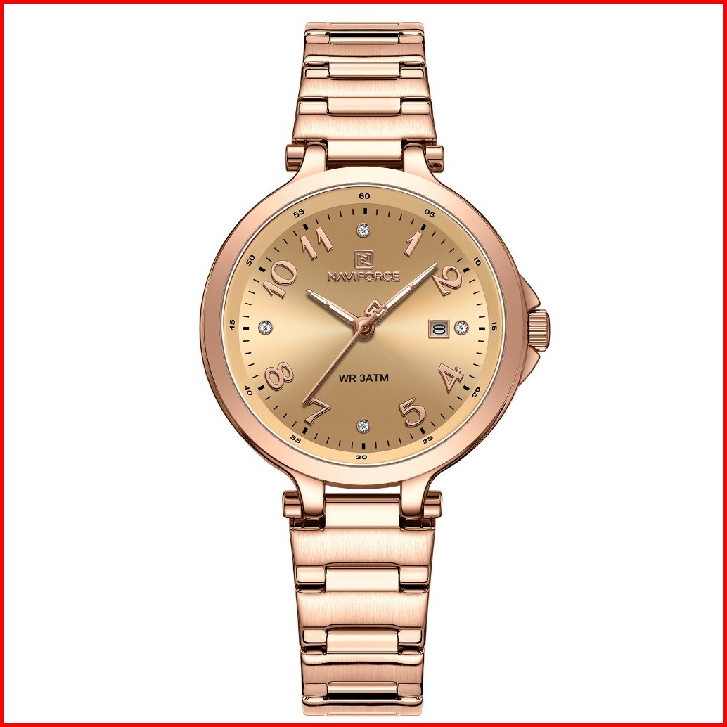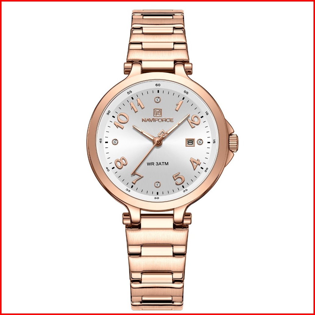 Naviforce Nf-5033l Stainless Steel Strap Water Resist 3 Atm Jam Tangan Wanita
