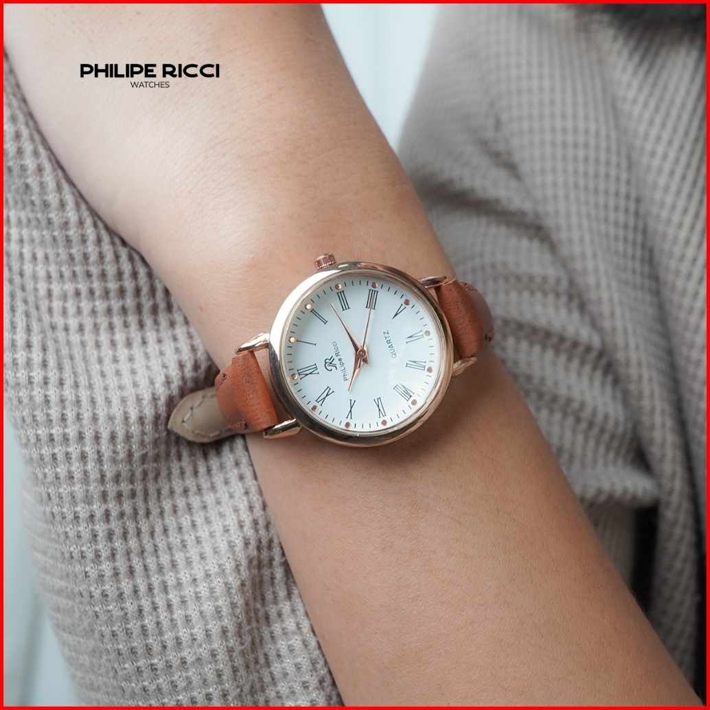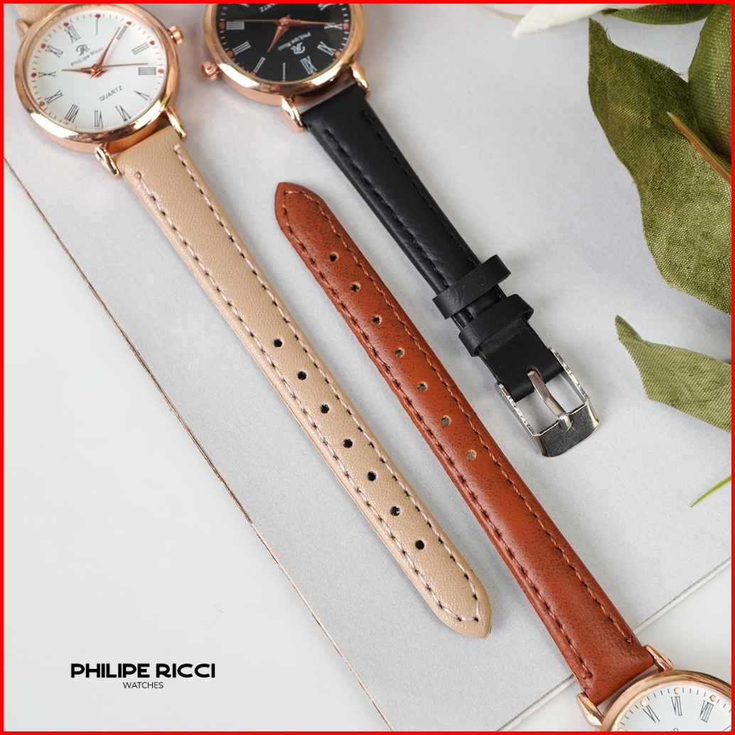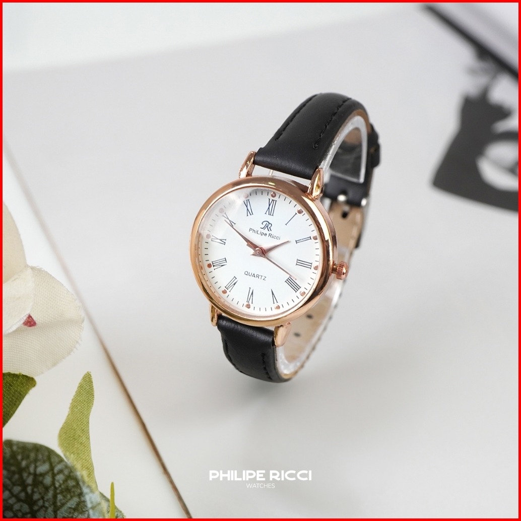 Philipe Ricci Jam Tangan Wanita Kulit Hitam Bulat Kecil Terbaru Original 6989 Women Watches Free Box