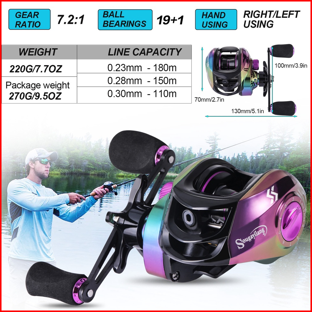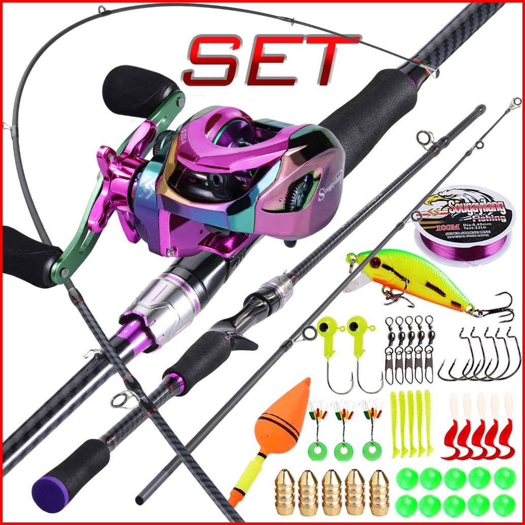 Joran Dan Reel 1.8m 2.1m 2 Bagian Casting Fishing Rod Dan 18 1 Bb 7.2 1 Rasio Gear Rem Magnetik Baitcasting Reel Memanci