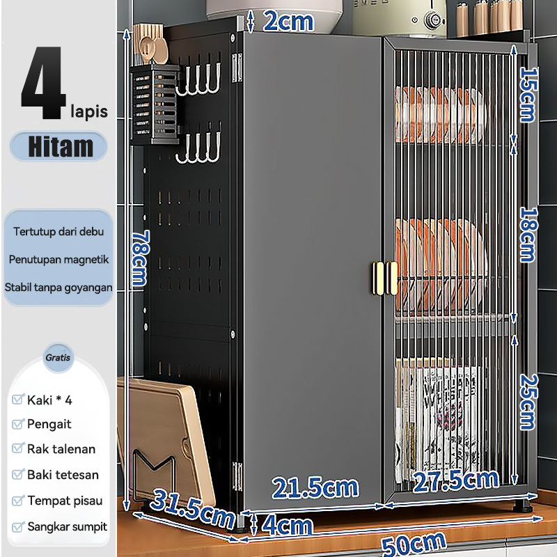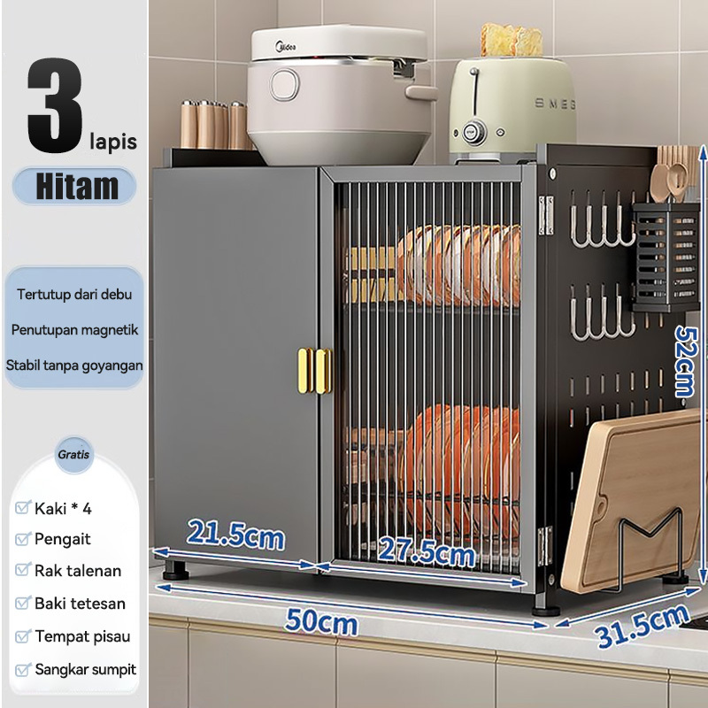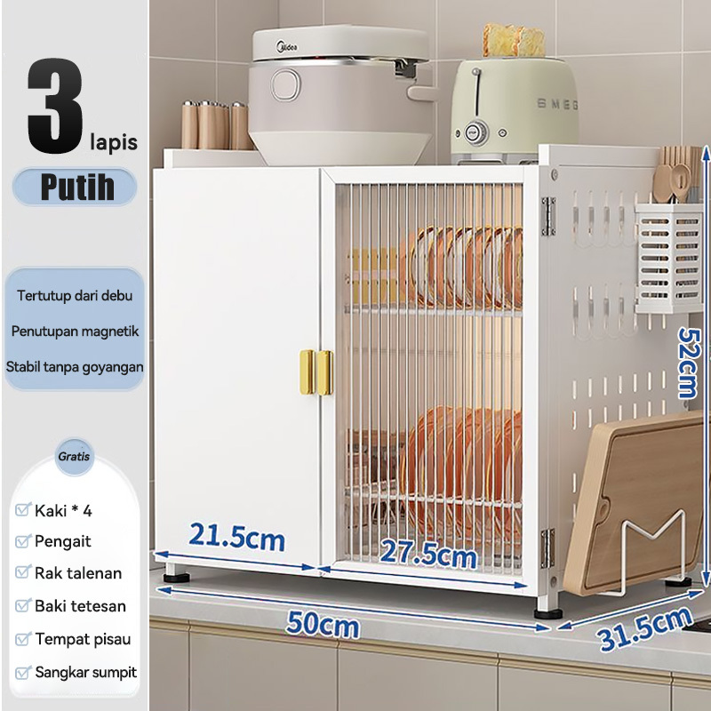 Lemari Piring Minimalis Modern Rak Kabinet Stainless Pengering Dapur Serbaguna