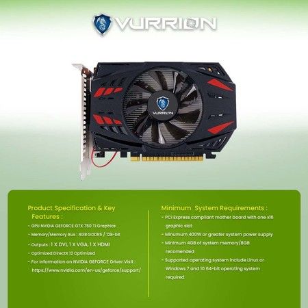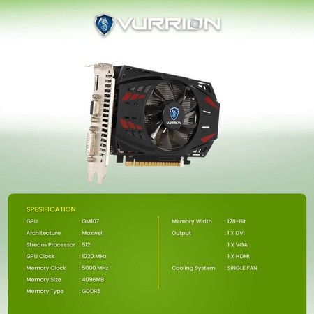 VGA CARD GTX DDR5 VURRION GTX 750 TI 4GB FULLSET DDR5 VURRION 128BIT GAMING VGA ORIGINAL TERLENGKAP RESMI