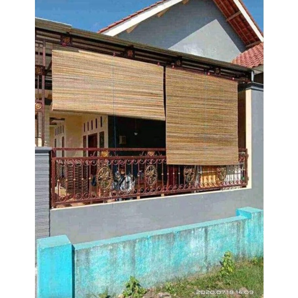 Tirai bambu Plitur & vernis ukuran 2x2 mter Lengkap tali penggulung