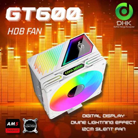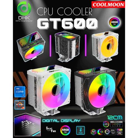 CPU COOLER COOLMOON GT600 ARGB DIGITAL TEMPERATUR DISPLAY FAN PROSESOR cpu cooler fan