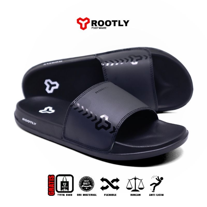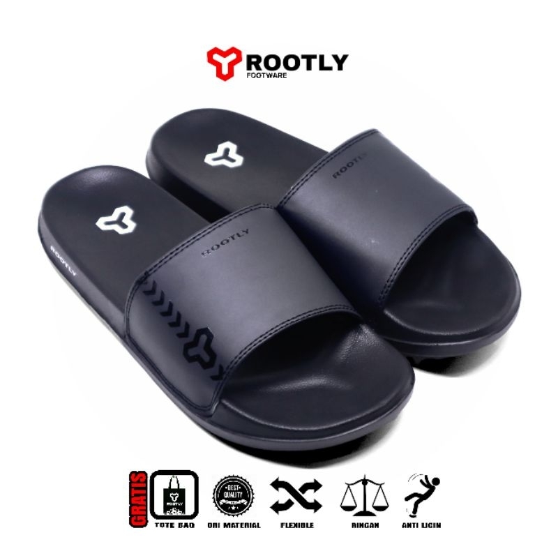 Sandal pria casual kekinian dewasa terbaru / Sandal Slop Hitam Karet sintetis murah empuk