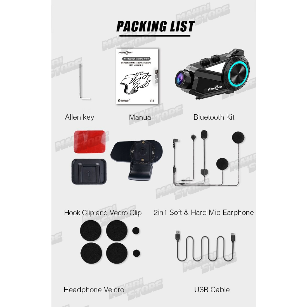 Bluetooth Intercom Helm Freedconn R3 Action Cam VLOG Kamera QHD 2K 1440P PRO Universal Not Sena Pactalk Parani