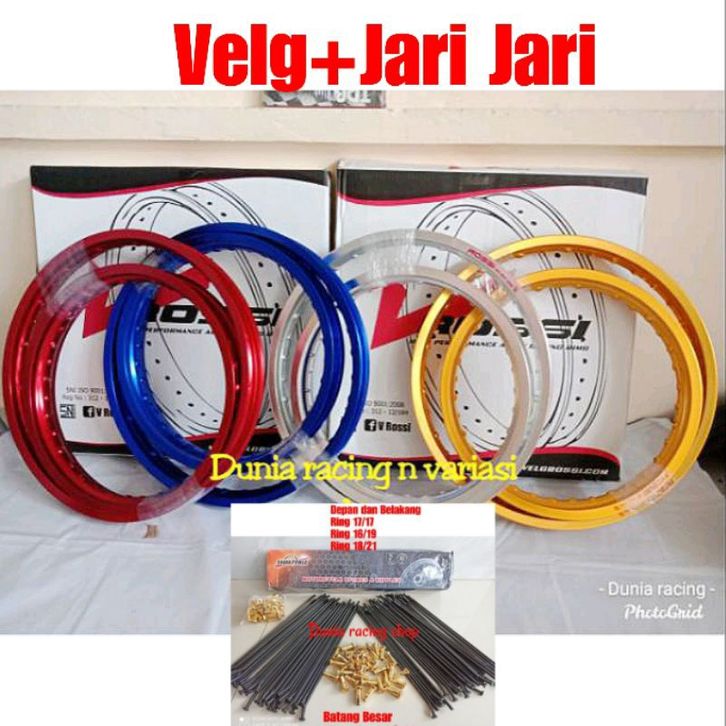 Velg Rossi Pelek Rossi Ring 16 19 Ring 18 21 Hole 36 Biru Hitam Gold Ungu Merah Silver Sepasang Depan Belakang + Jari