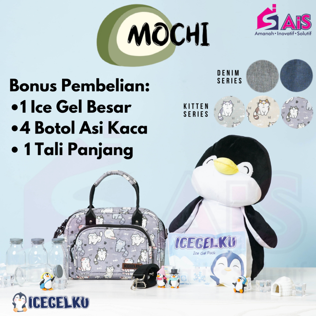 ICEGELKU TAS ASI PAKET LENGKAP COOLER BAG ASI MOCHI SERIES + ICE GEL BESAR + 4 BOTOL KACA. KUALITAS PREMIUM TAS ASI TAS BAYI TAS PENDINGIN