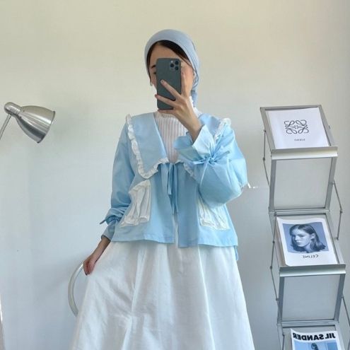CARDIGAN WANITA OUTER CROP TALI KERAH LUCU / KOREAN STYLE CARDY -PN