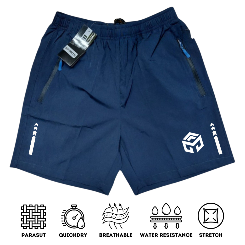 Celana Pendek Parasut Olahraga Saku Resleting Pria Wanita Running Santai Jumbo Polos Navy