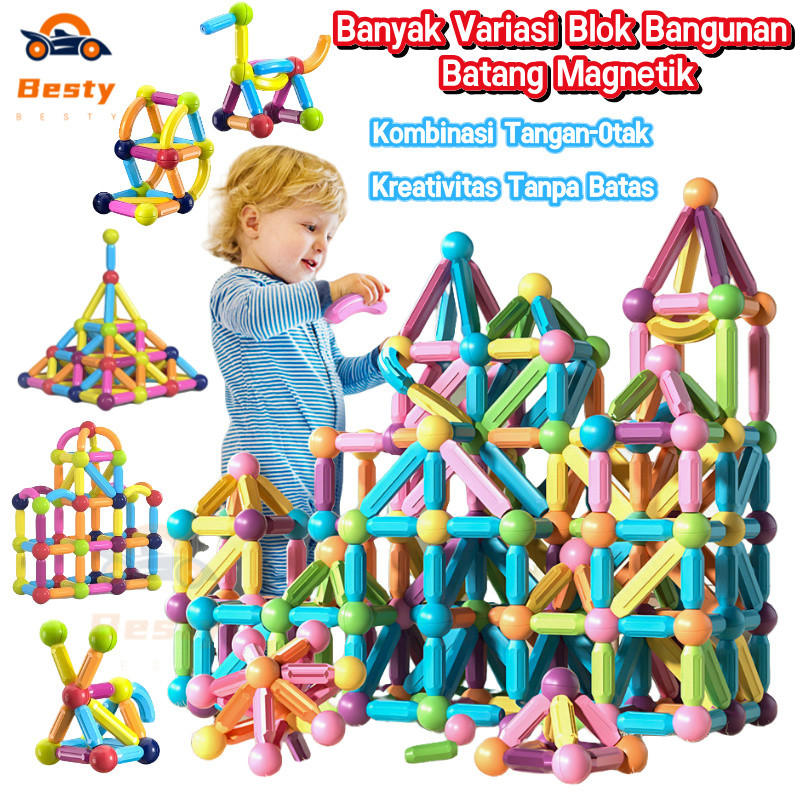 【Besty】130Pcs Blok Bangunan Batang Magnetik Magnet Stick Magnetic Building Blocks Edukasi Mainan