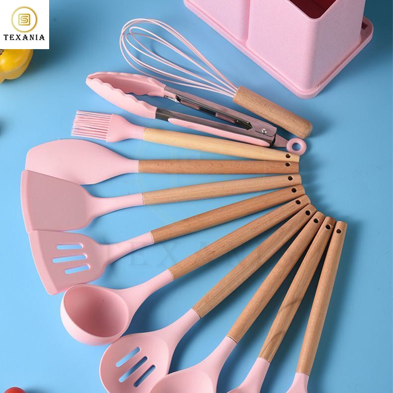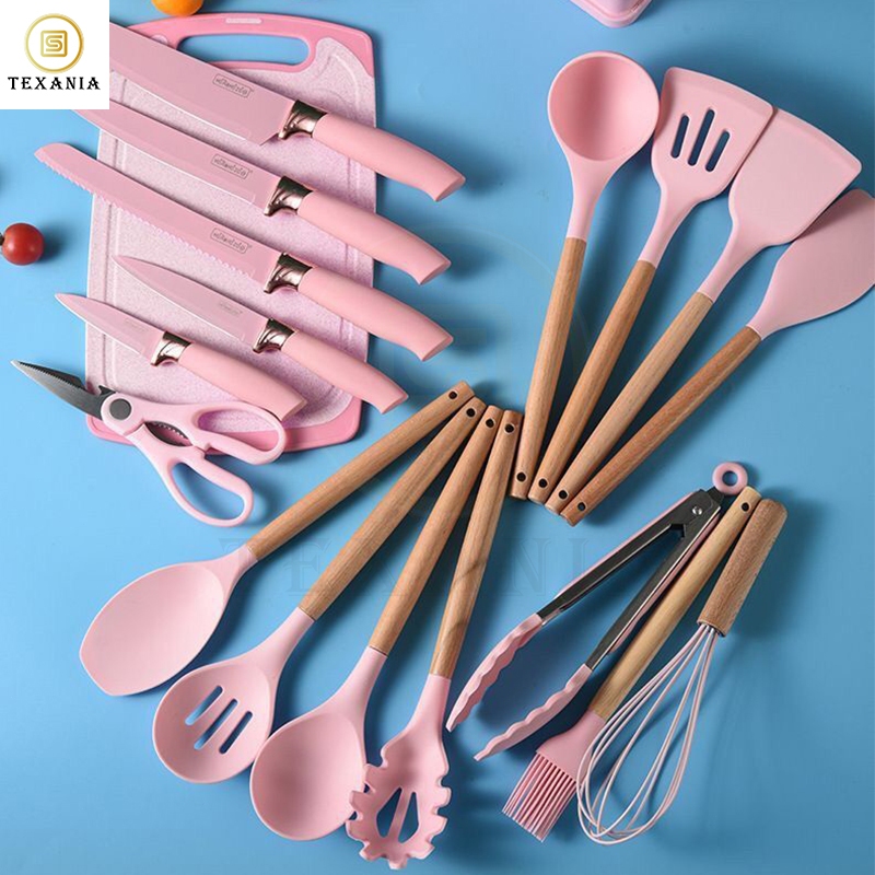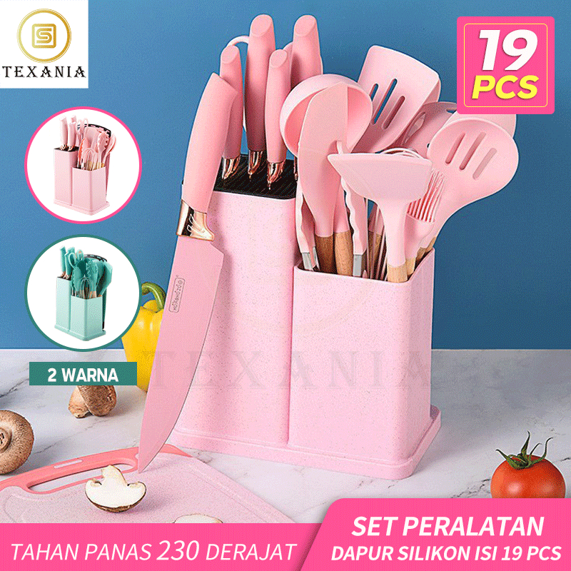 ✨19 Pcs TEXANIA SPATULA SILIKON SET PREMIUM INCLUDE TALENAN Wadah Spatula Silicone Utensil Pegangan Kayu Baking Set Alat