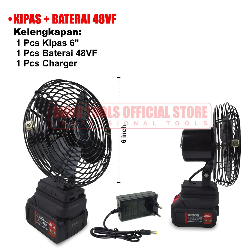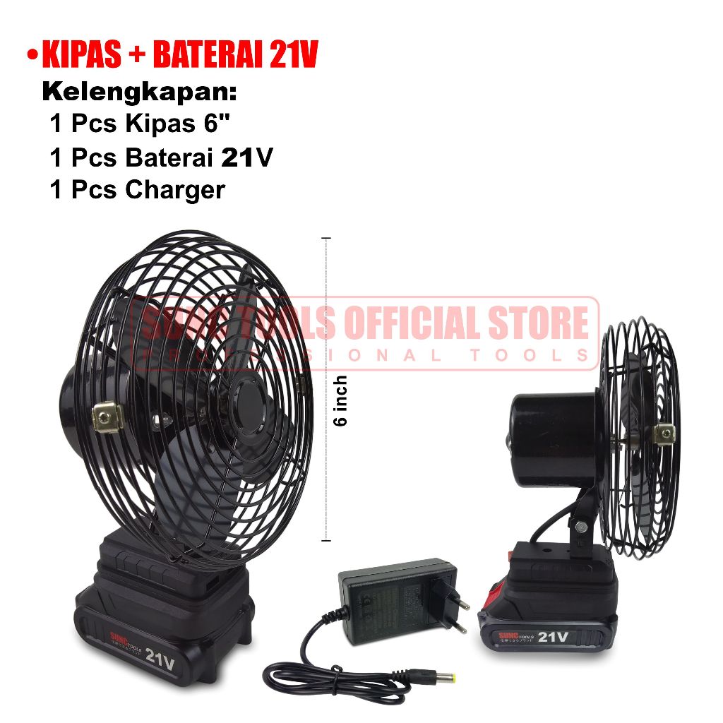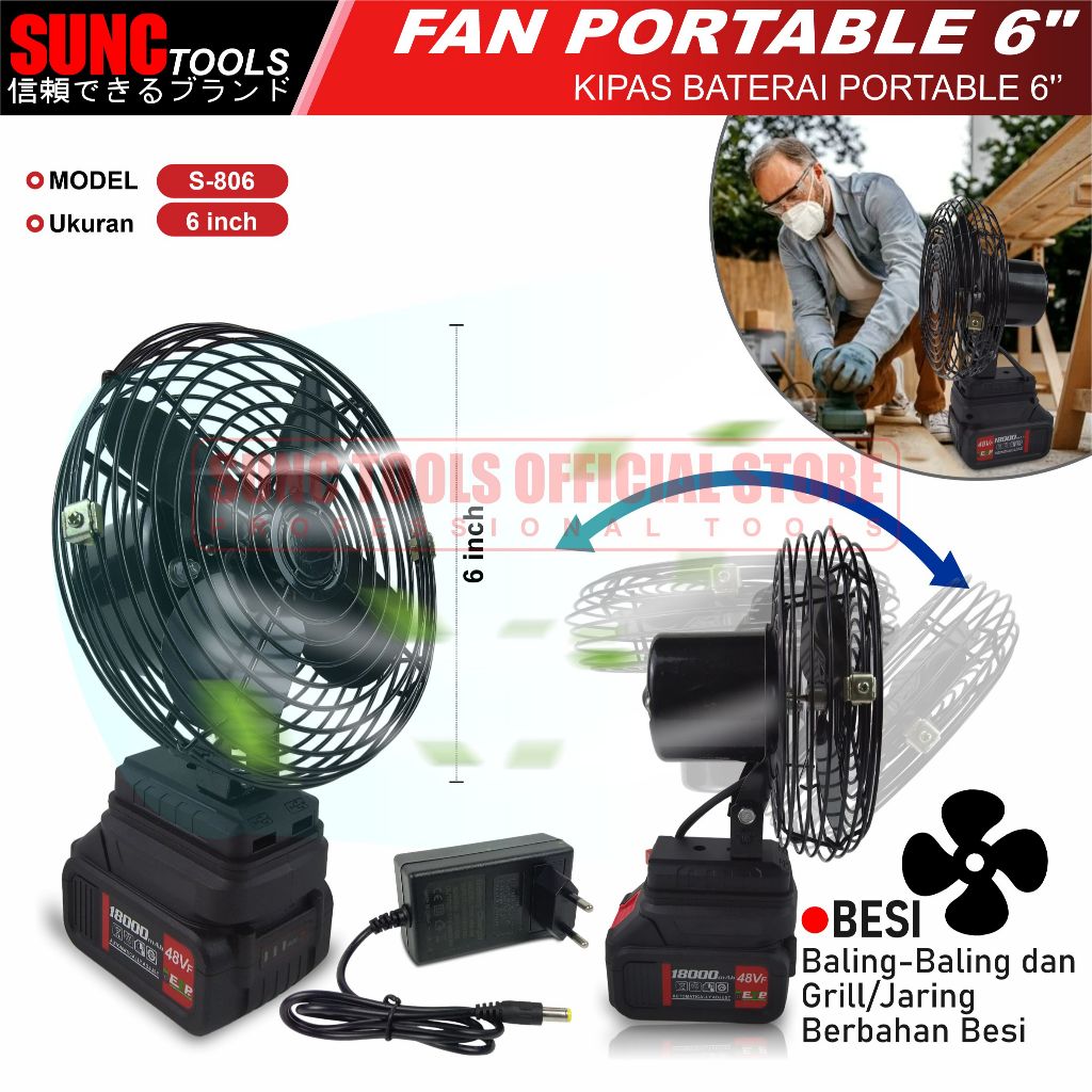 Kipas Angin Besi 6" Inch SUNC TOOLS Fan Portable Baterai