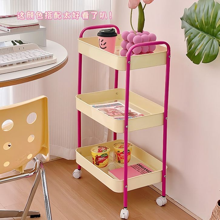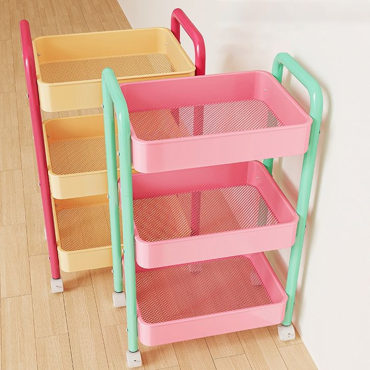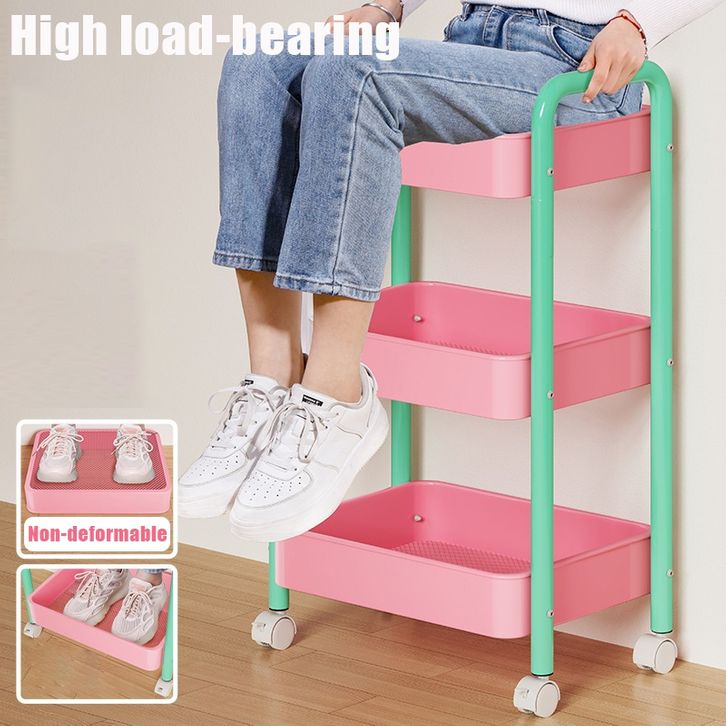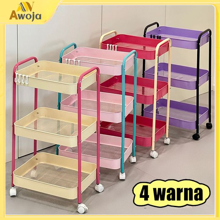 Rak Trolly Rak Penyimpanan 3 Tingkat Warna Macaron Susun Storage Rak Steel Multifungsi Dengan Roda Perlengkapan Rumah