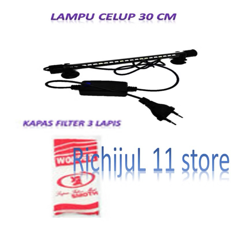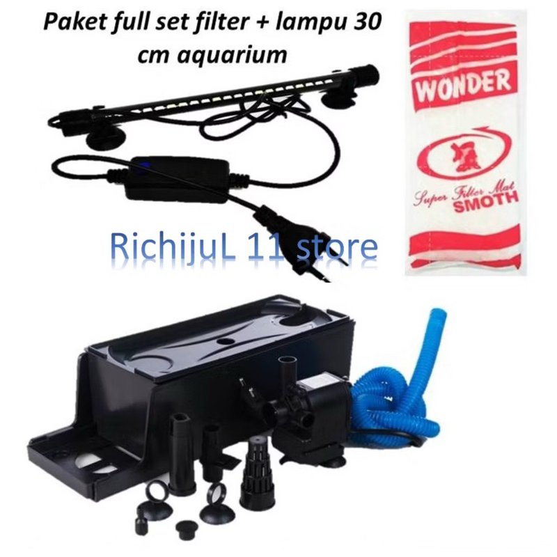 [PROMO] Paket set box filter sedang(M) + lampu celup 30 cm aquarium Komplit siap pakai