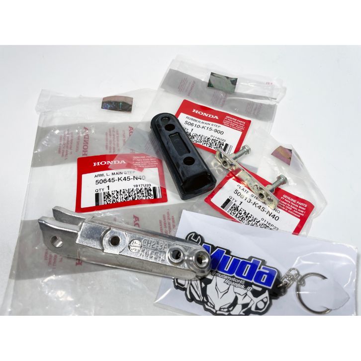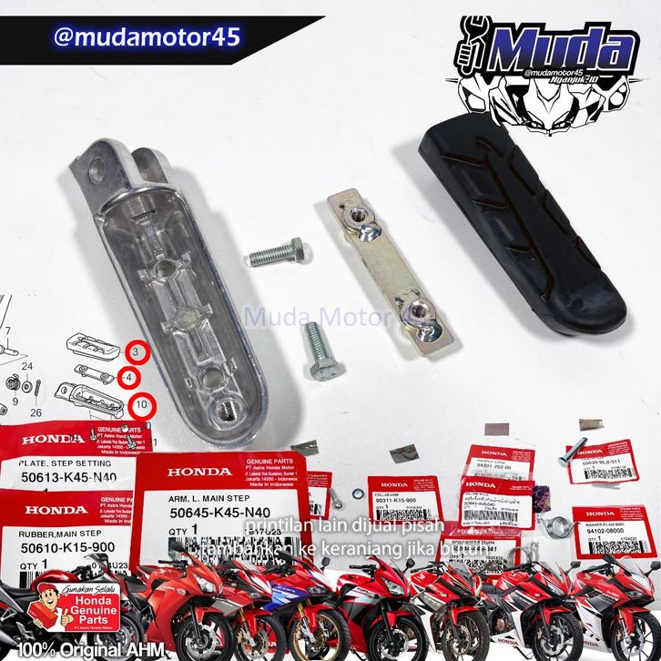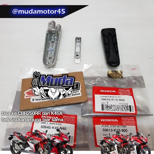 PIJAKAN KIRI CBR150R DEPAN K45G K45N K45R FOOT STEP REST BESI SET KARET PLAT 50645-K45-N40 FOOT STEP ARM L CBR 150 LED