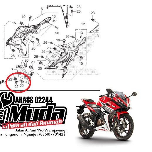 KLIP RIVET 8MM COVER BODY BESAR CBR150R K45G K45N BAWAH MESIN 90601-PV3-003-004 90601PV3003 CLIP AIR INTAKE DUCT PUSH U
