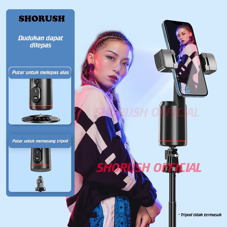 Shorush Q02 Auto Al Face Tracking Gimbal Handphone Stabilizer 360° With Lampu Led RGB Gimbal Stabilizer Gesture