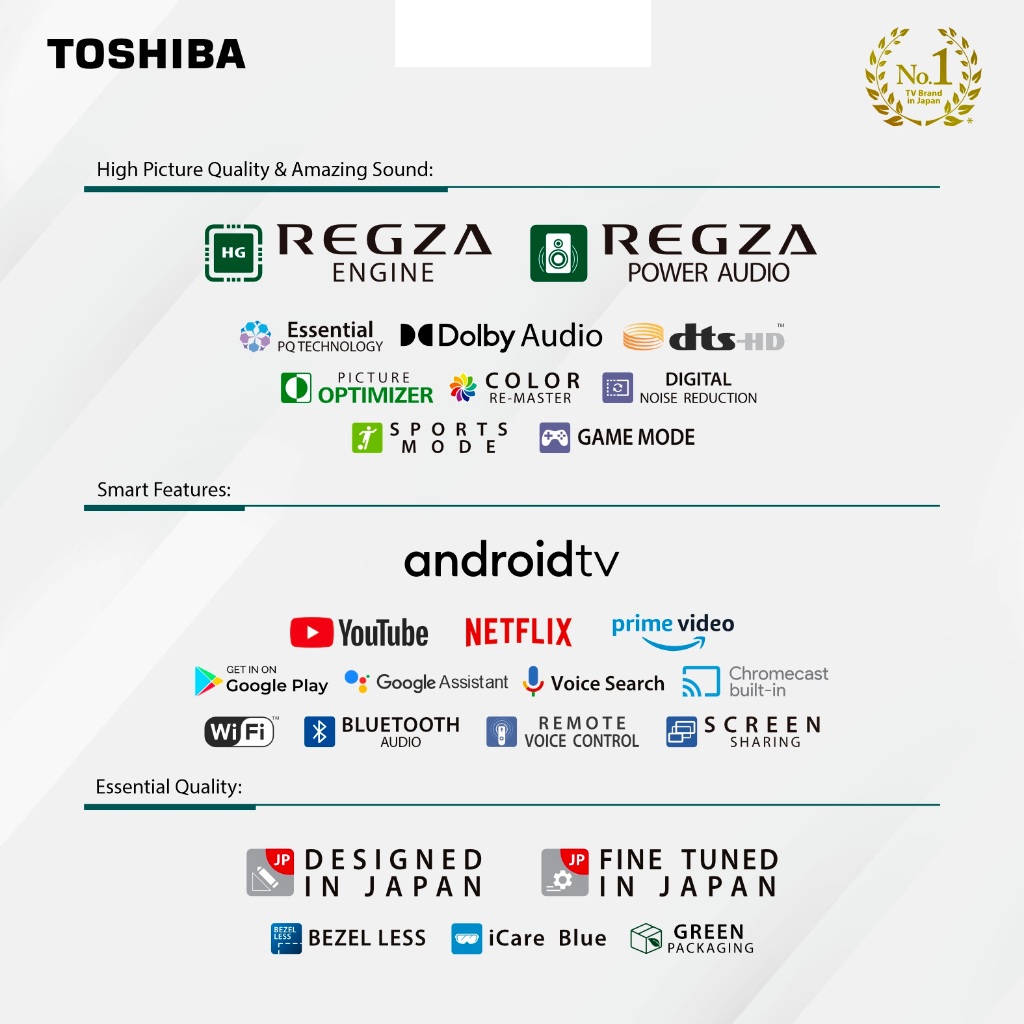 Toshiba TV 43" FHD Android TV - Google Assistant Netflix Disney+ Youtube Dolby Audio Wifi Bluetooth HDMI Digital