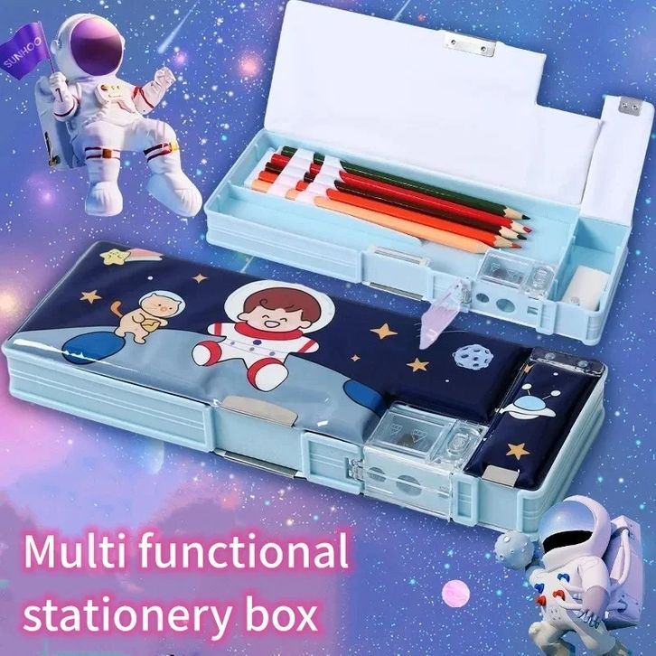 Kotak Pensil Anak Perempuan Kotak Tempat Pensil Lucu Pola Kartun Lapisan Ganda dengan Rautan Pensil