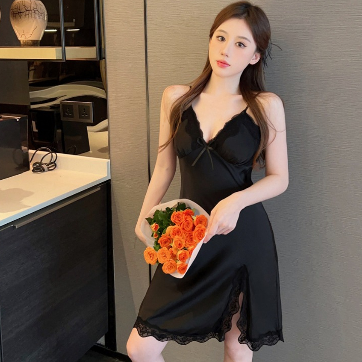 BT003 Baju Tidur Piyama Daster Wanita Korea Sexy Mini Dress Women Silk Satin Nightdress