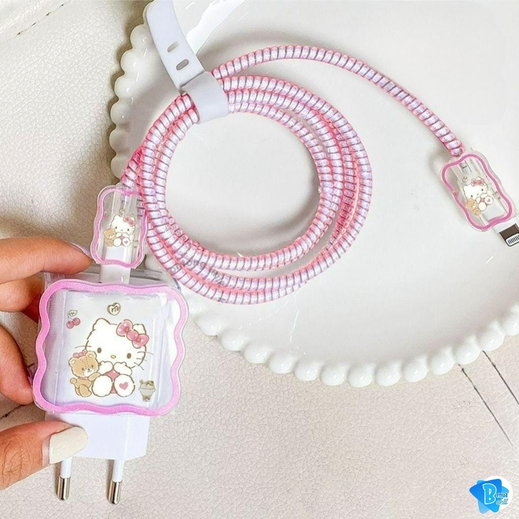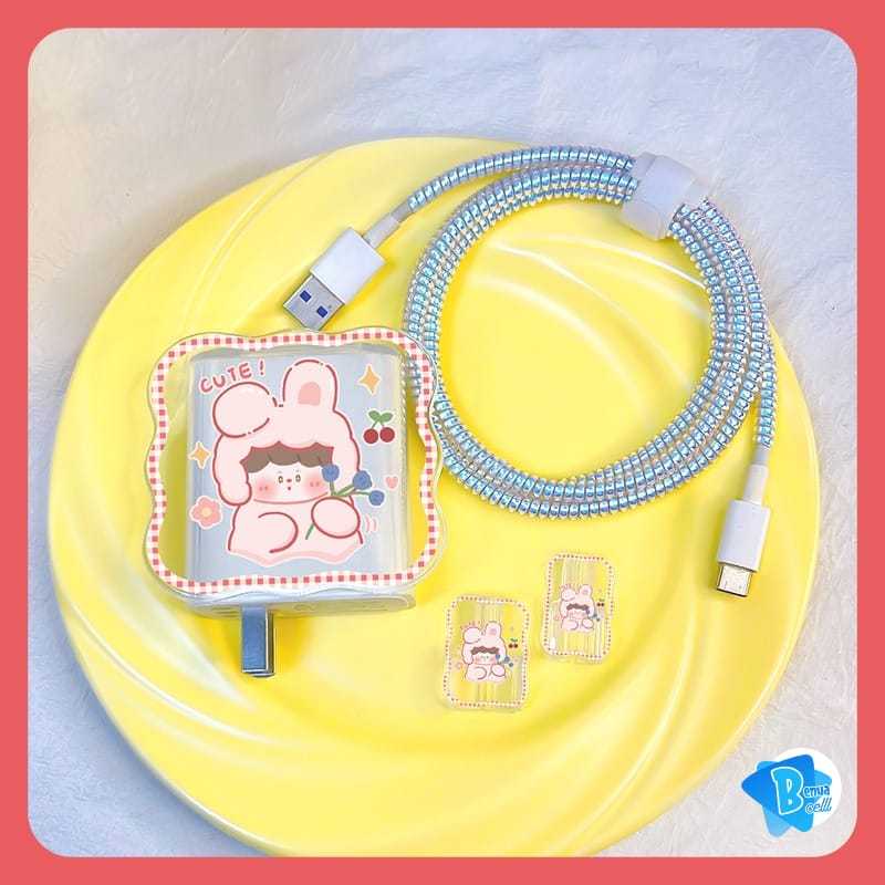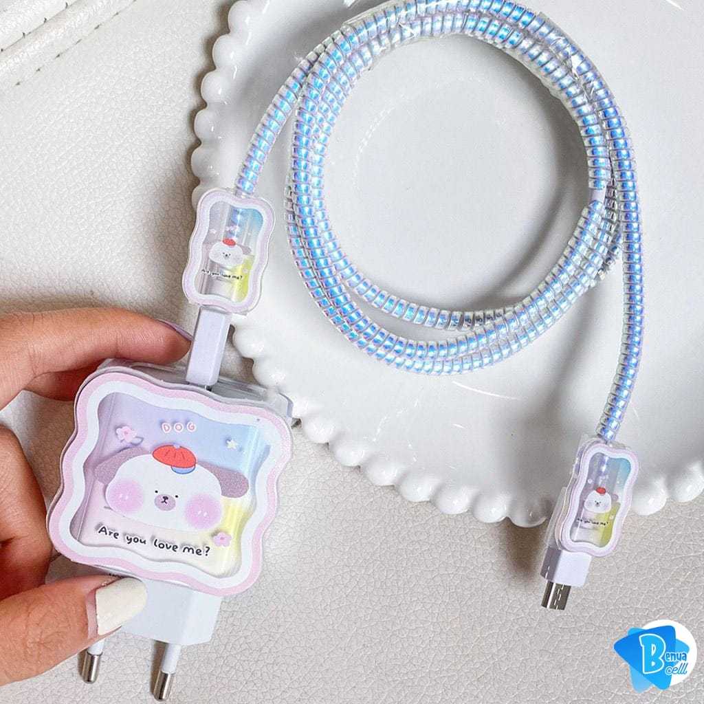 Case Kepala charger WAVY - Set Paket Cover Pelindung Kepala & Kabel Charger Spiral / Cable Set Protector - Compatible fo