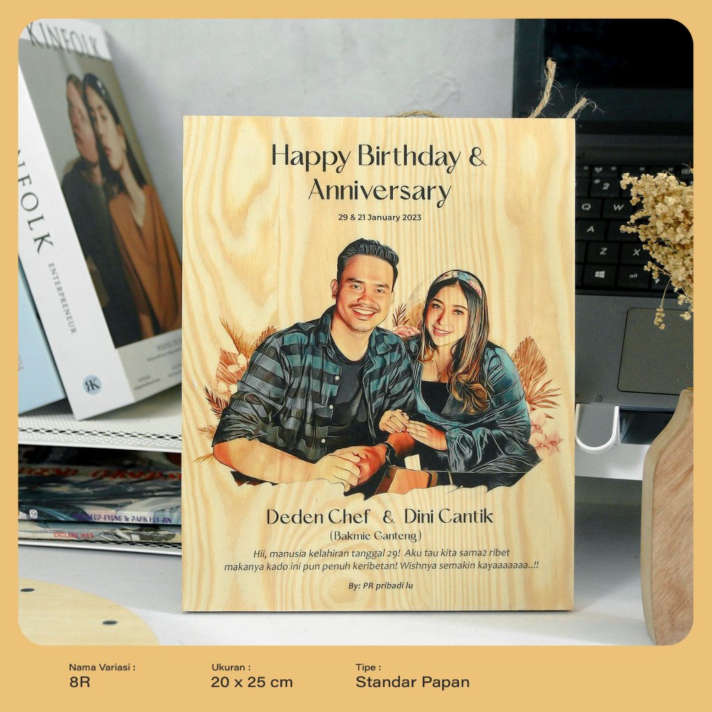 [PROMO] Kado Lukisan Kayu Hadiah Ulang Tahun Wisuda Pernikahan Kenang Kenangan Custom Sketsa Wajah Aesthetic