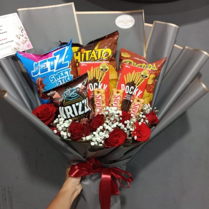 Buket snack. Buket makanan. Buket coklat. Handbuket snack makanan