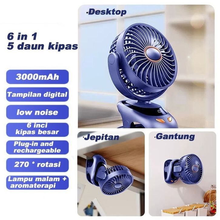 Kipas Mobil Original 50000mAh Kipas Angin USB Clip Mini Fan Rotating Kipas Angin Meja Mini Jepit Portable LED Display P