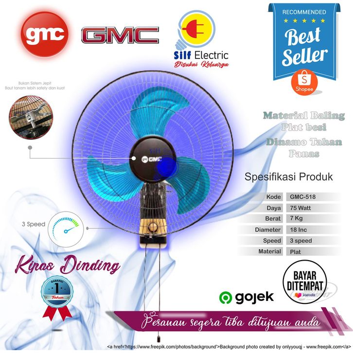 Kipas Angin Dinding Jumbo Tornado Besi Wall Fan GMC 18 Inch - GMC 518 -MURAH