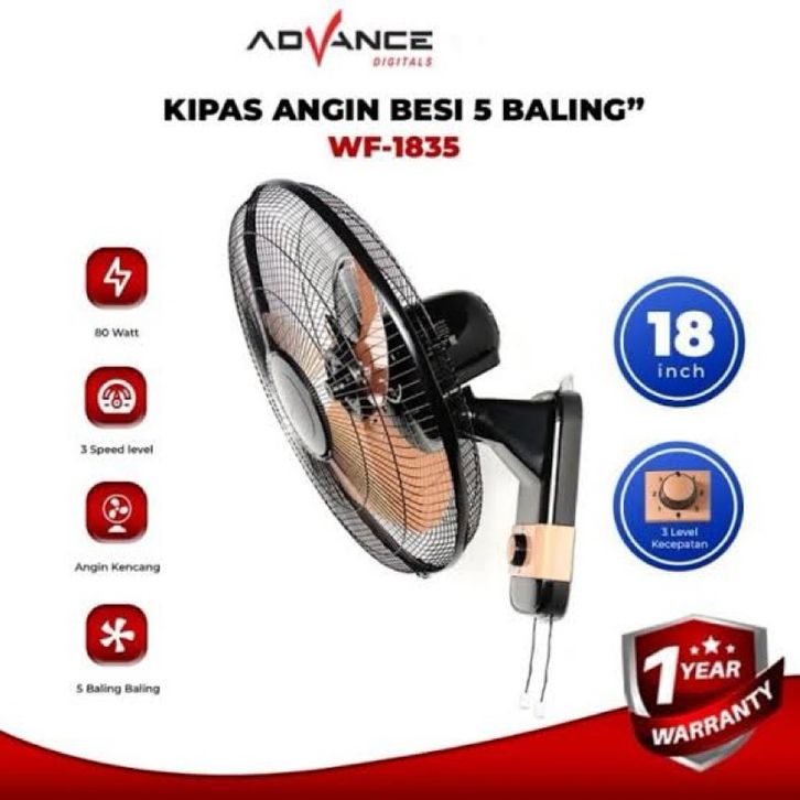 ADVANCE WF-1835 WALL FAN 18" / KIPAS ANGIN BESI DINDING 5 BALING / KIPAS ANGIN TEMBOK 18INCI