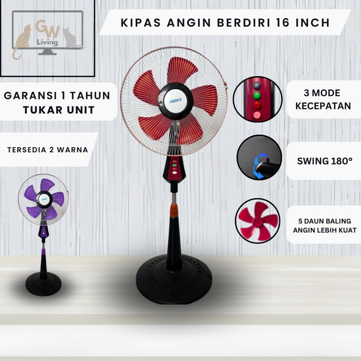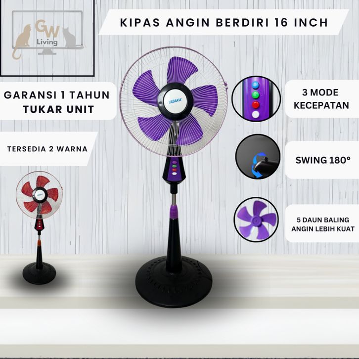 KIPAS ANGIN BERDIRI 16 INCH 5 BALING KENCANG YASAKA